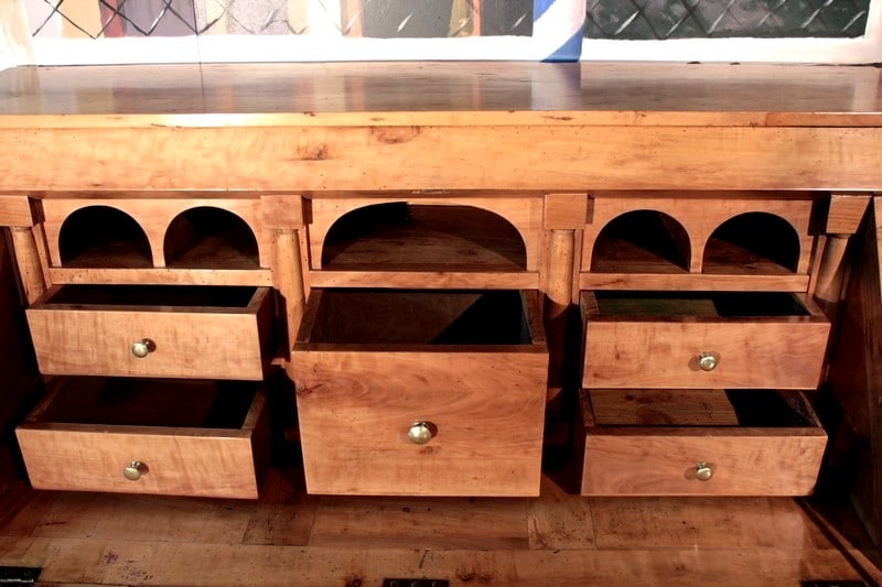 Depuis 50 ans, chaque pièce de mobilier est minutieusement restaurée avec passion dans notre atelier d’ébénisterie.