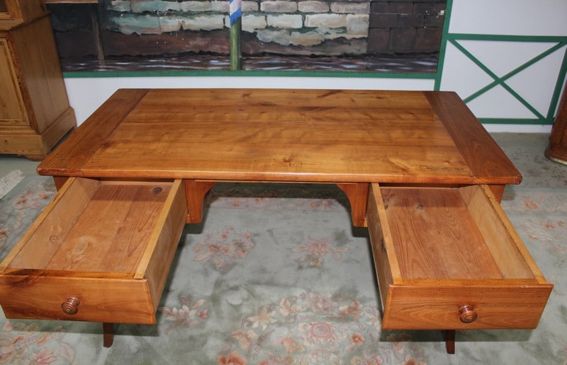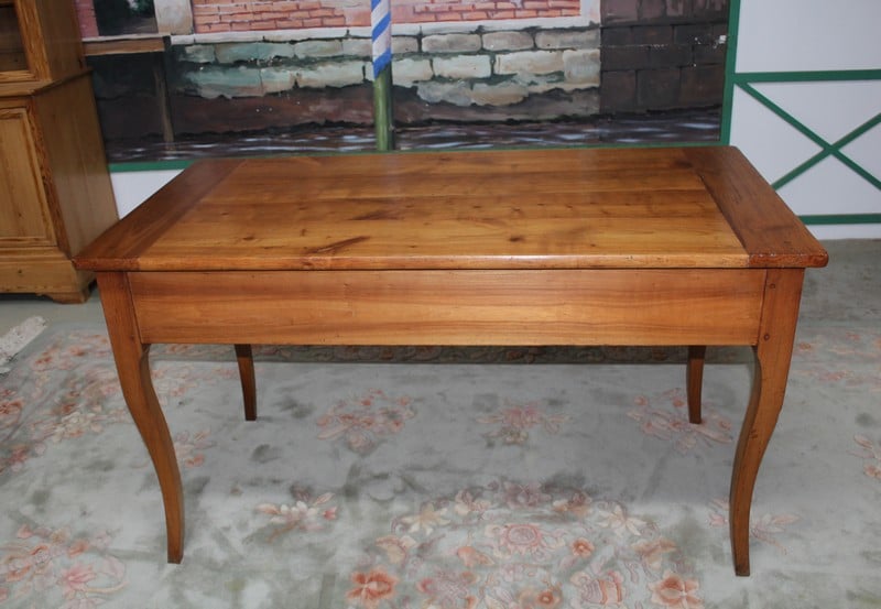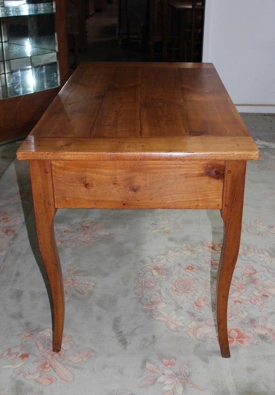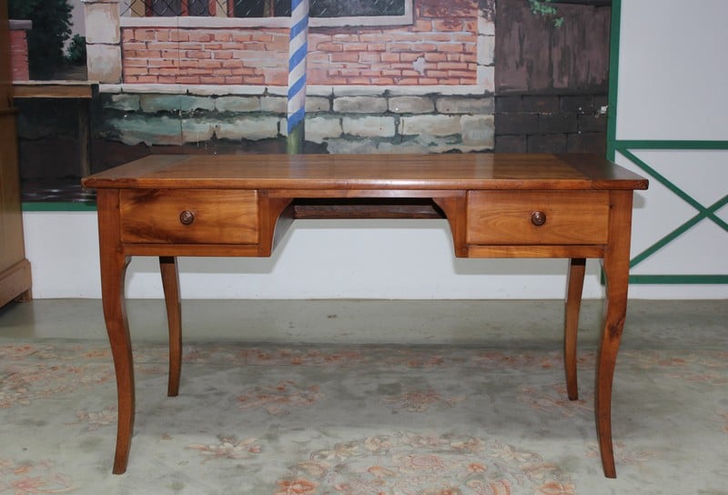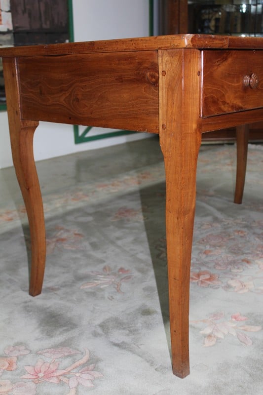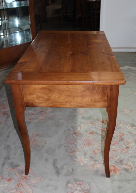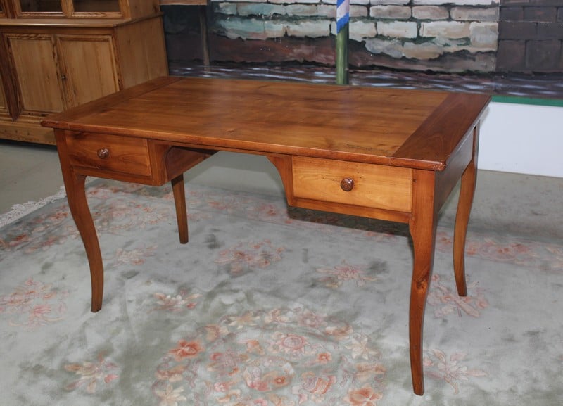 Table-Bureau de style Louis XV en merisier, ouvrant à 2 tiroirs en façade et reposant sur 4 pieds galbés.