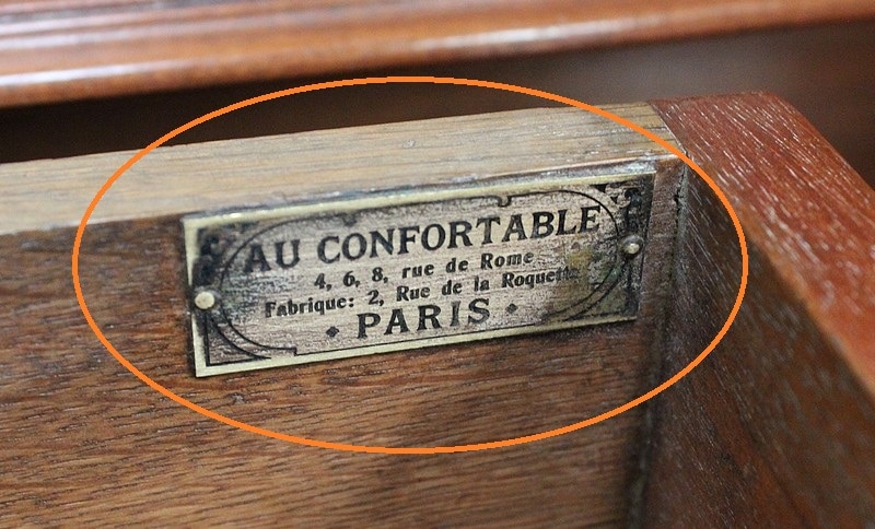 Il a bénéficié d’une fabrication de Qualité, qu’il doit ‘Au Confortable’, entreprise Parisienne qui a apposé son Cachet dans l’un des tiroirs.