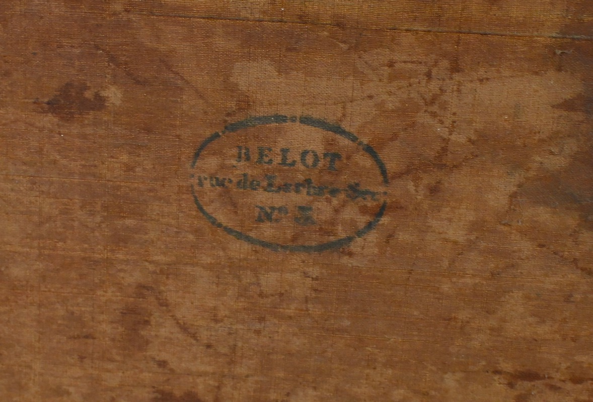 A l’arrière nous retrouvons le cachet du marchand de toiles « Belot ».