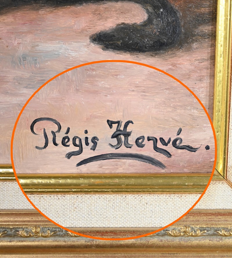 Peinture à huile, sur toile, signée Régis Hervé né en 1947 à Joinville-Le-Pont.