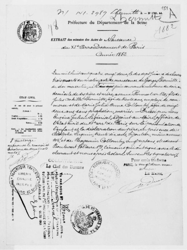 Extrait d’Acte de Naissance de Georges Lhermitte