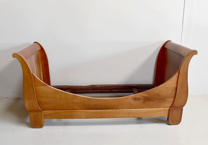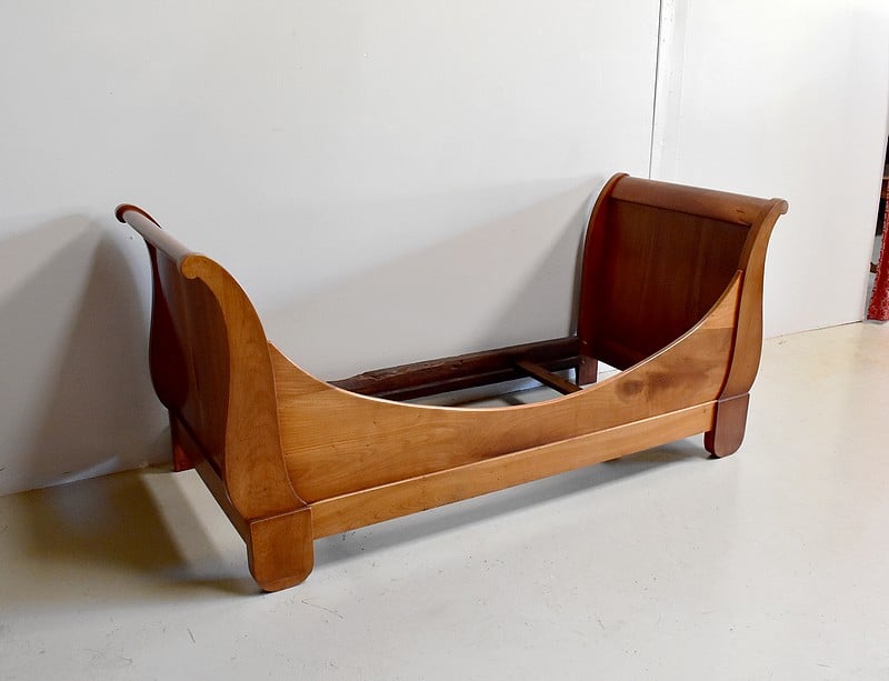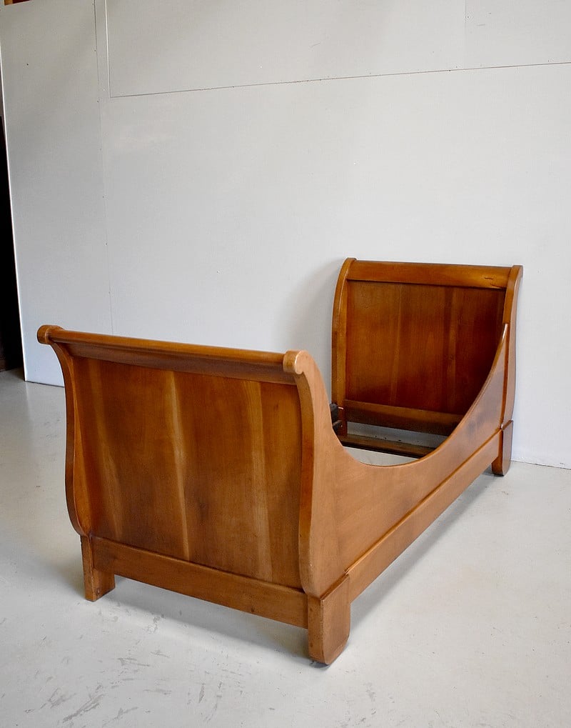 Rare petit lit Bateau 1 personne Louis-Philippe en Merisier massif.