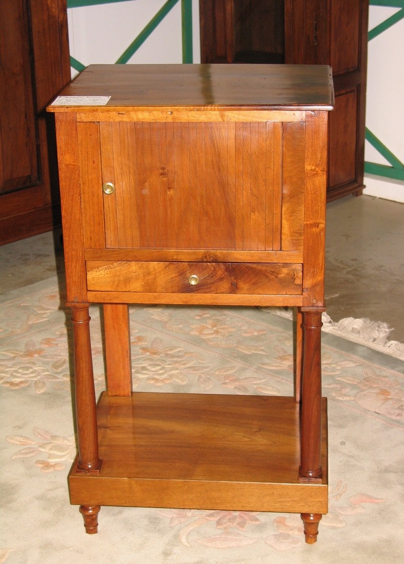 Chevet Empire en Noyer ouvrant par une porte à rideau et 1 petit tiroir. Tablette en partie basse. Époque : première moitié du XIXe (1830/1840)