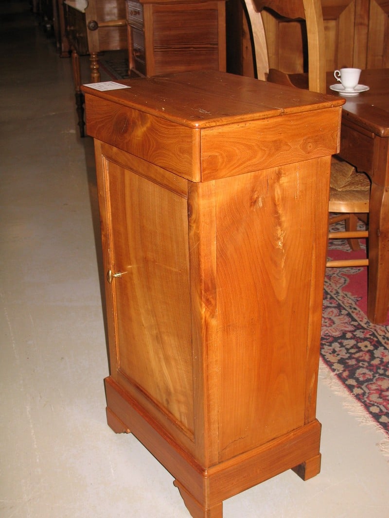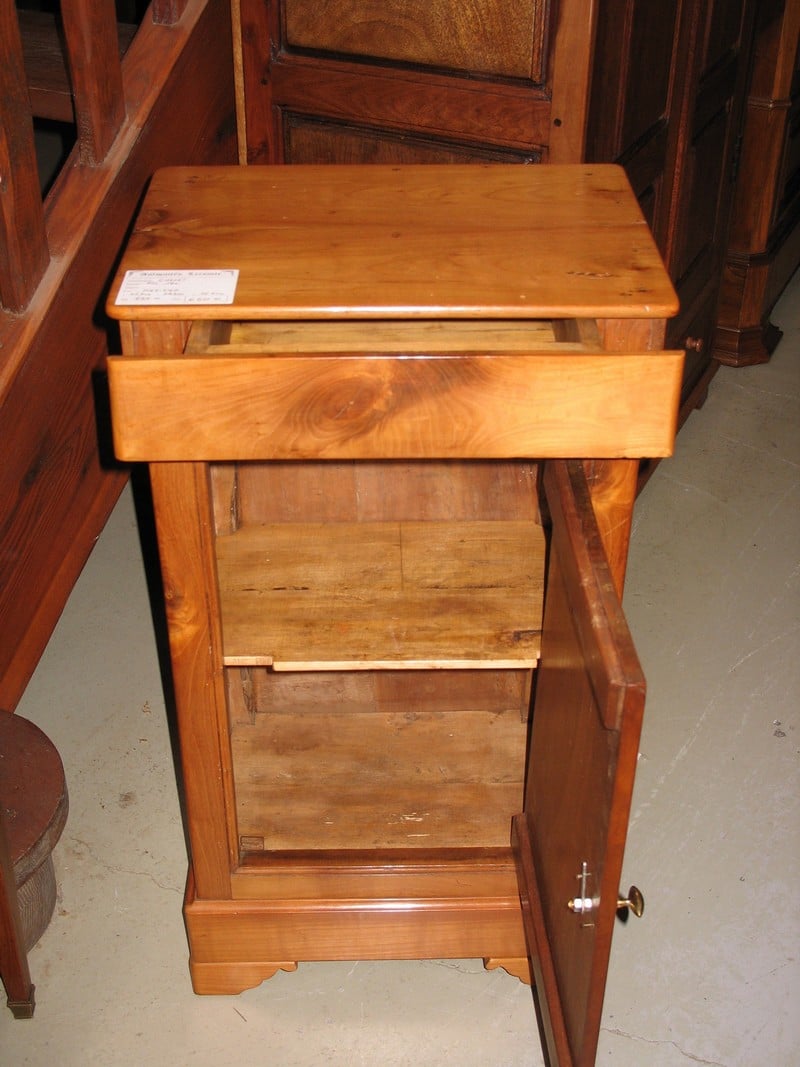 Chevet en merisier ouvrant à un tiroir et une grande porte.