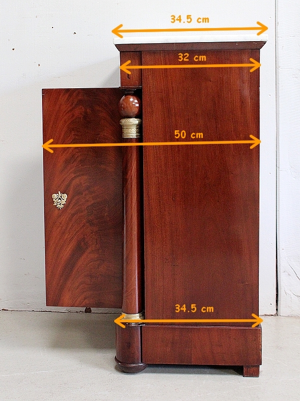 Ravissant Petit Chevet Empire en placage d’Acajou de Cuba toutes Faces.