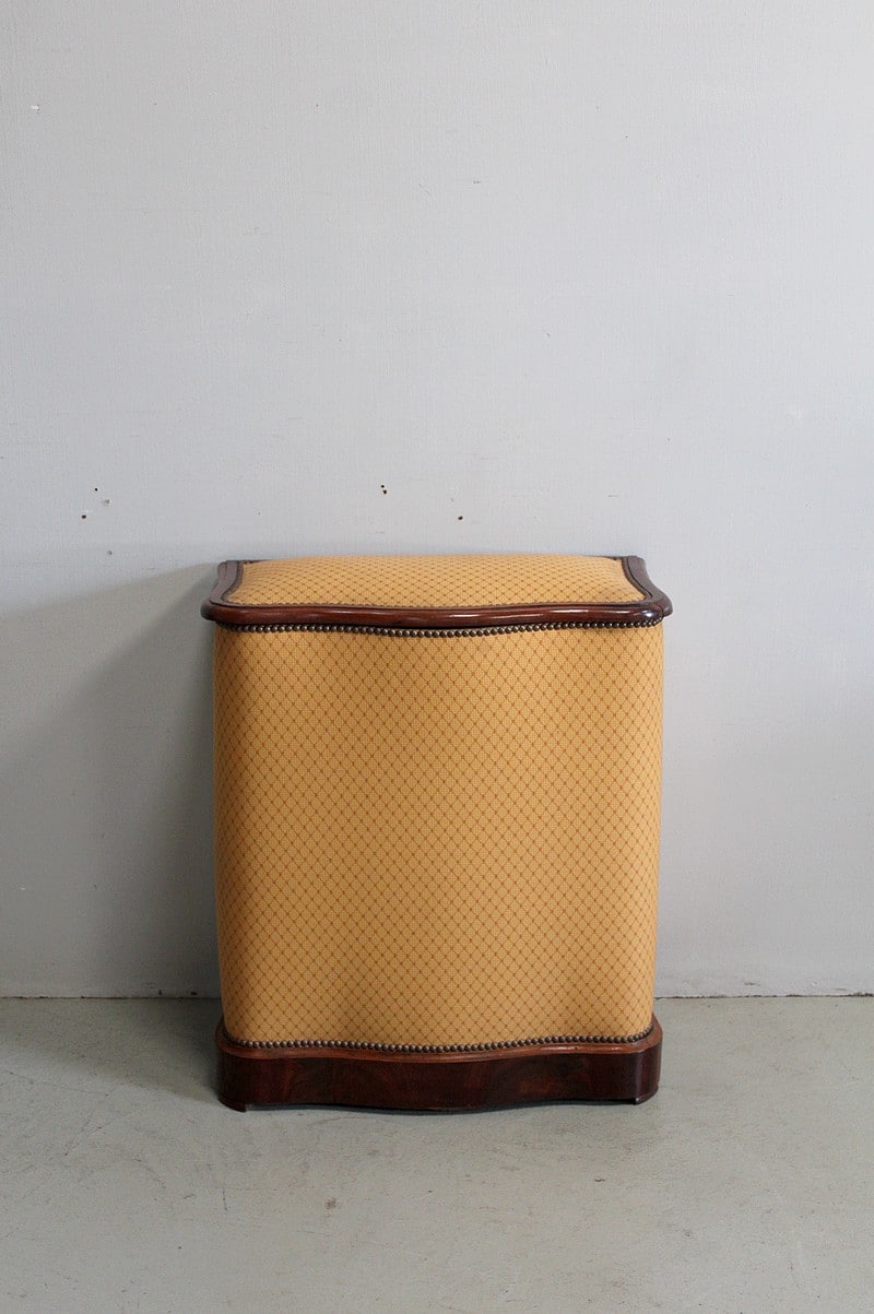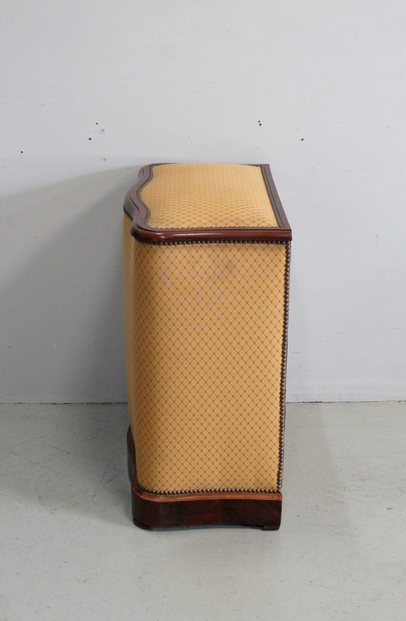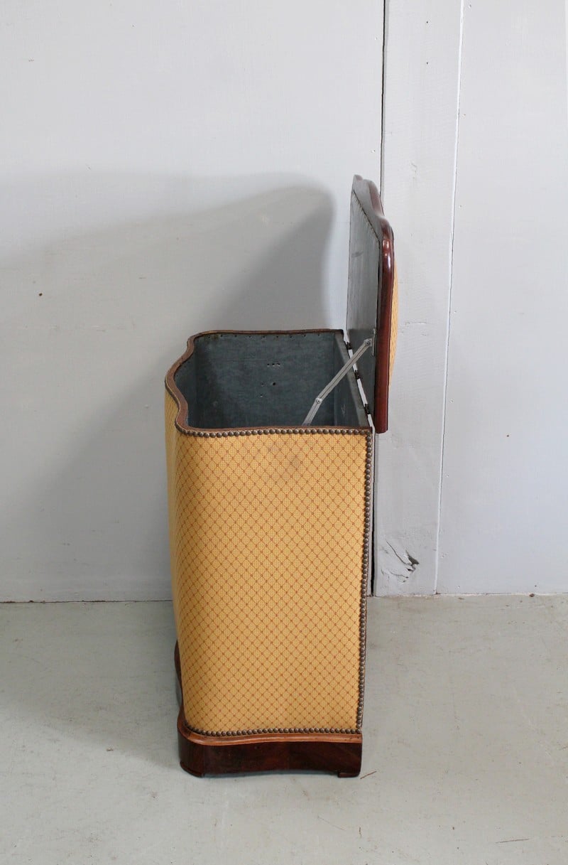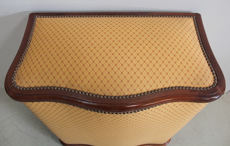 Coffre à linge Napoléon III matelassé en Acajou massif et placage de ronce d’Acajou.