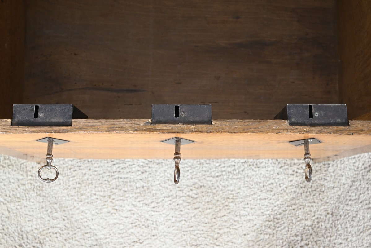 Ce coffre proposé par notre galerie n’en fait pas exception. Il est équipé de trois serrures fonctionnelles avec entrées en fer forgé et trois clés, le tout étant authentique.