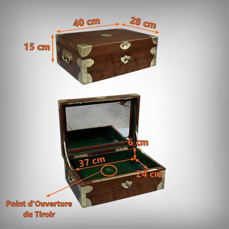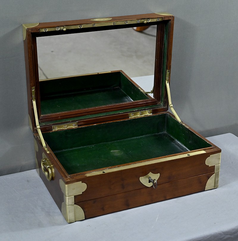L’intérieur du couvercle est garni d’un miroir, comme les nécessaires de toilette d’officier de Marine.