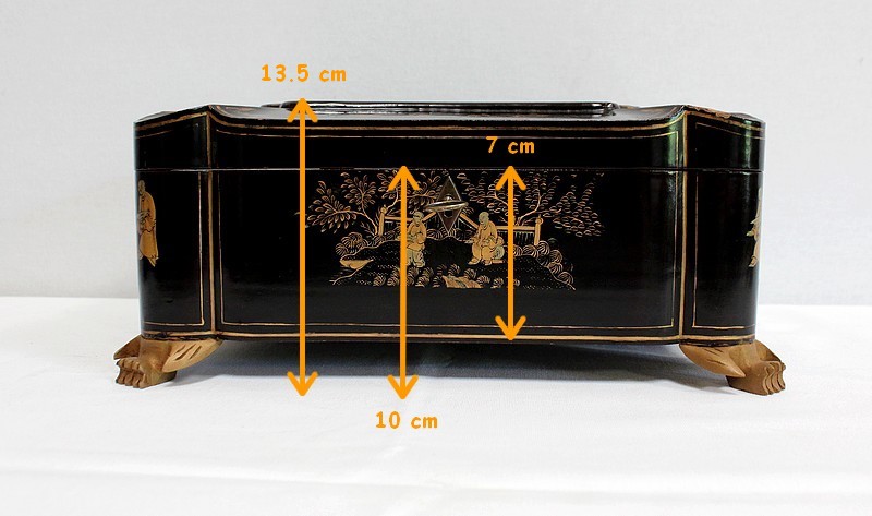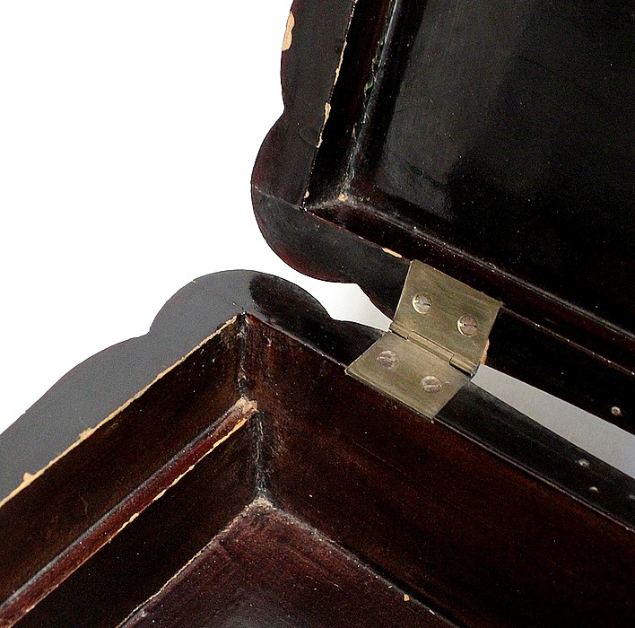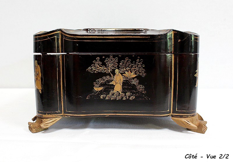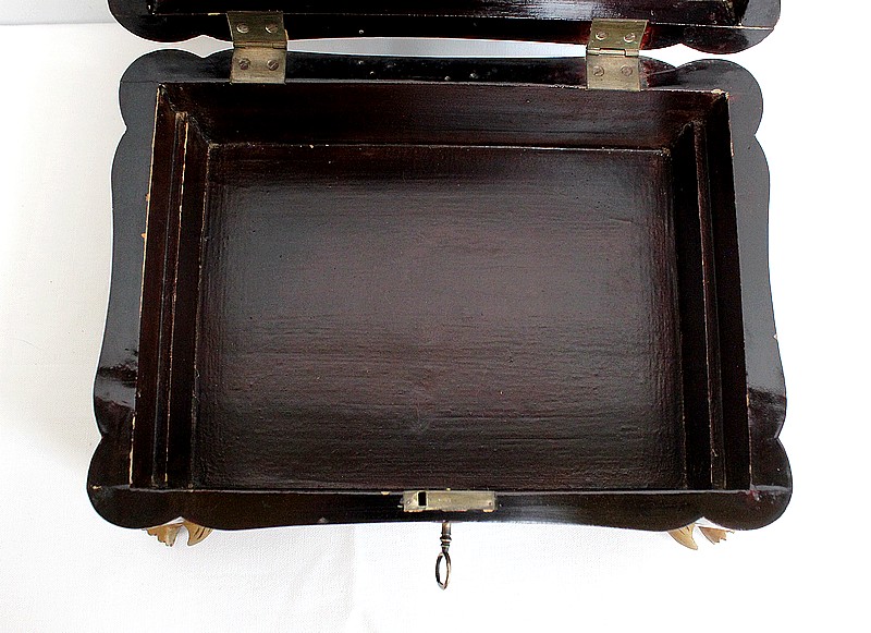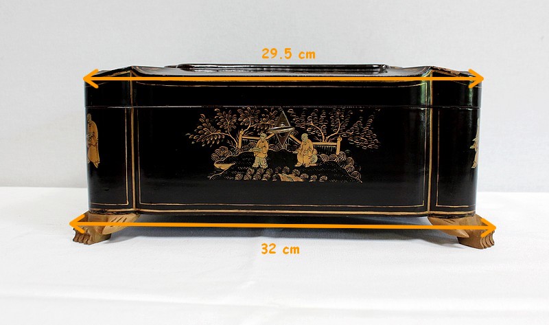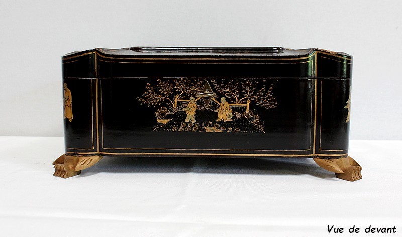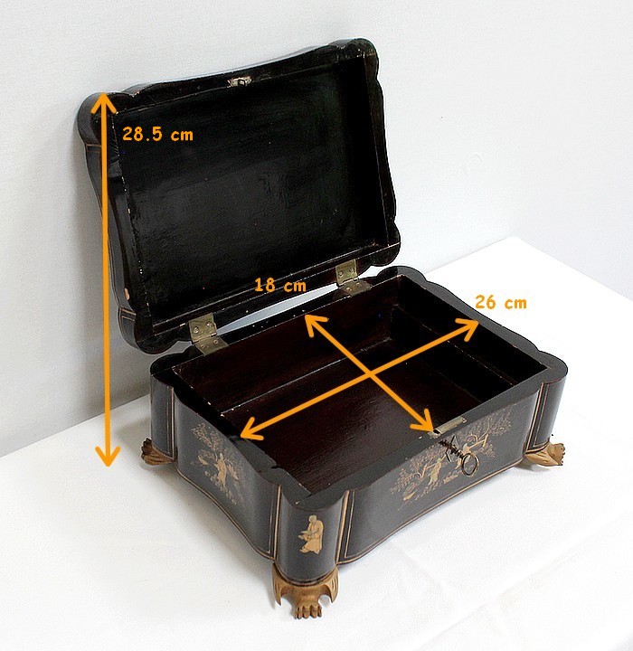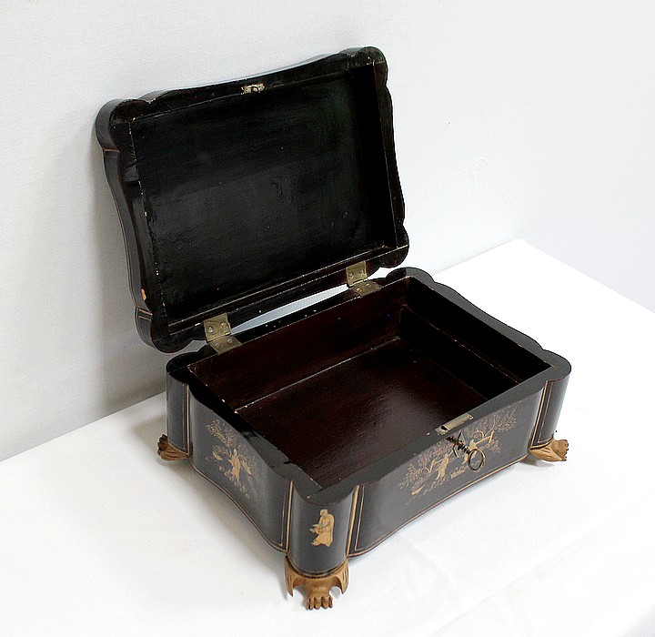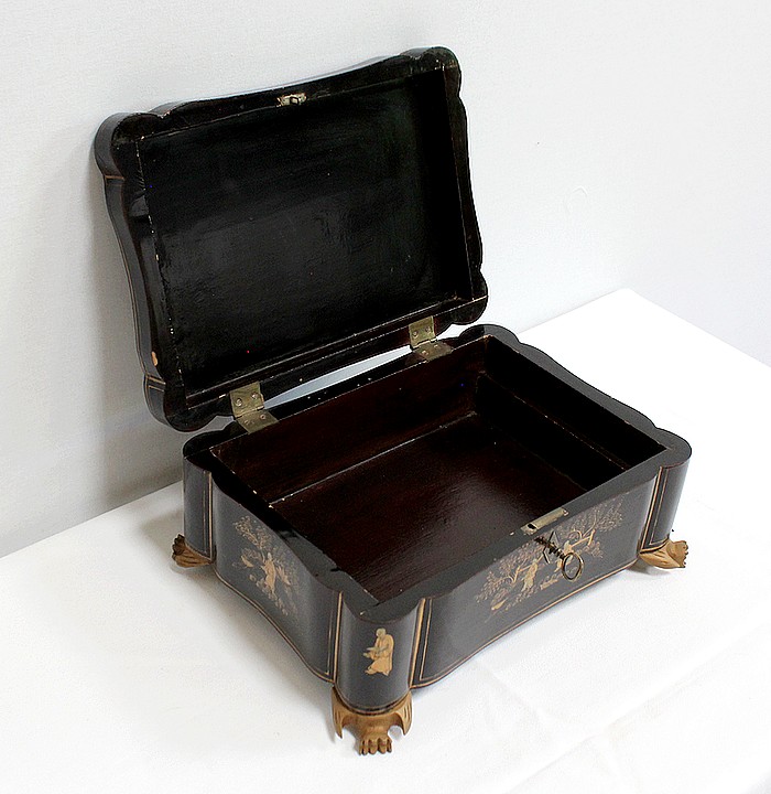 Joli Coffret de section Rectangulaire, en Bois à Laque Noire, conçu dans le goût Asiatique dans le courant du XIXe siècle.