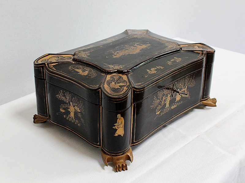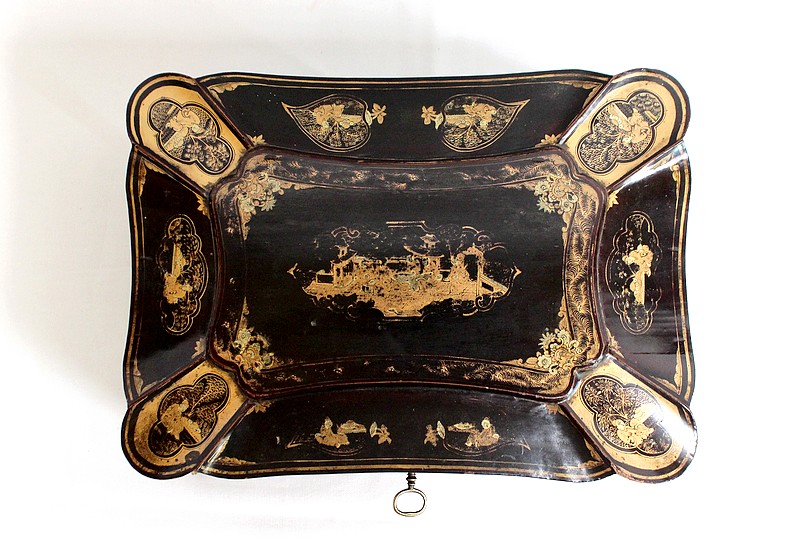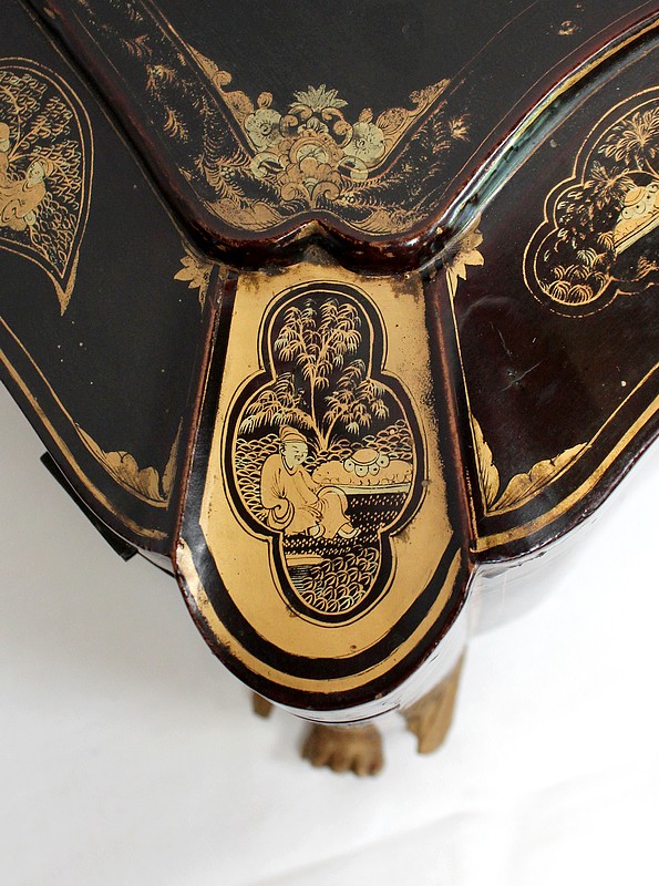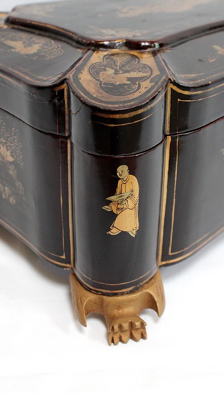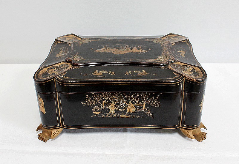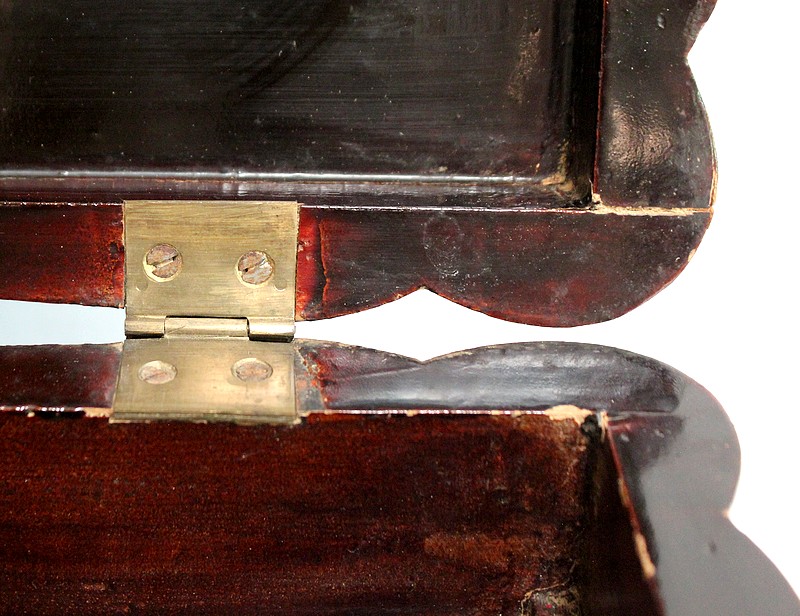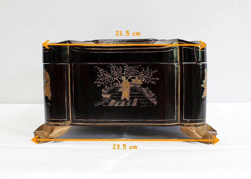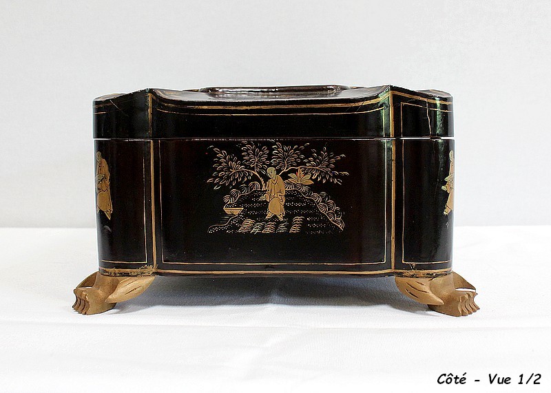 Joli Coffret de section Rectangulaire, en Bois à Laque Noire, conçu dans le goût Asiatique dans le courant du XIXe siècle.