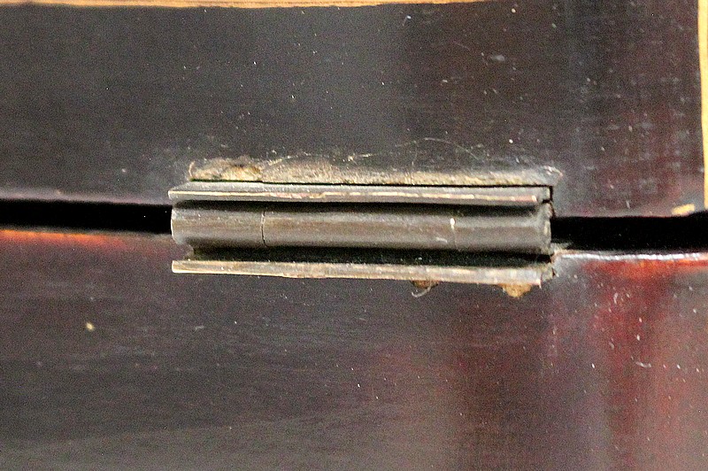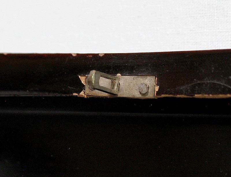 L’Abattant est pourvu d’une serrure fonctionnelle et de sa clé d’Origine, en Fer. Une fois ouvert, il révèle un compartiment de rangement d’une profondeur de 7 cm.