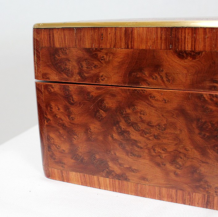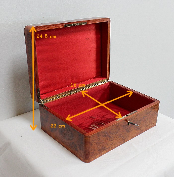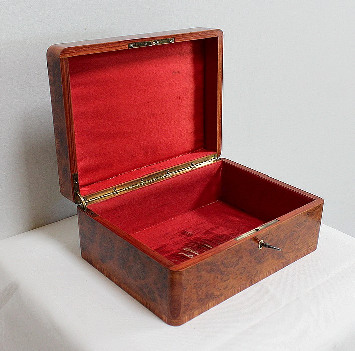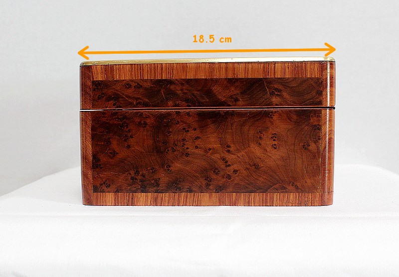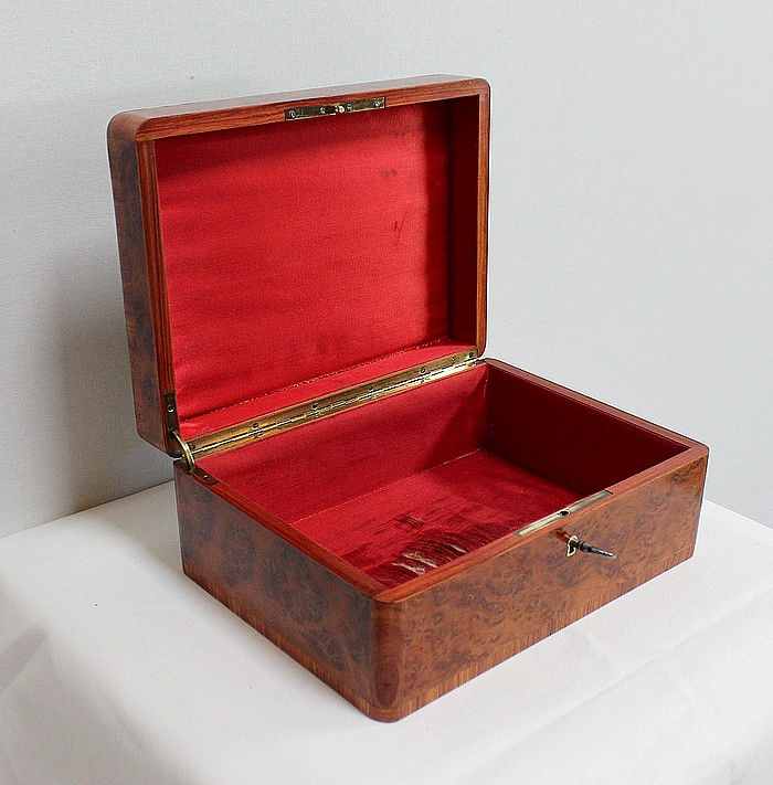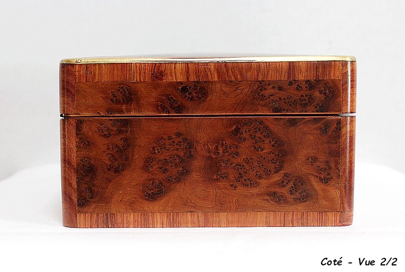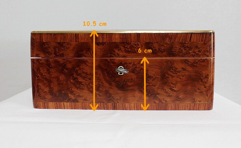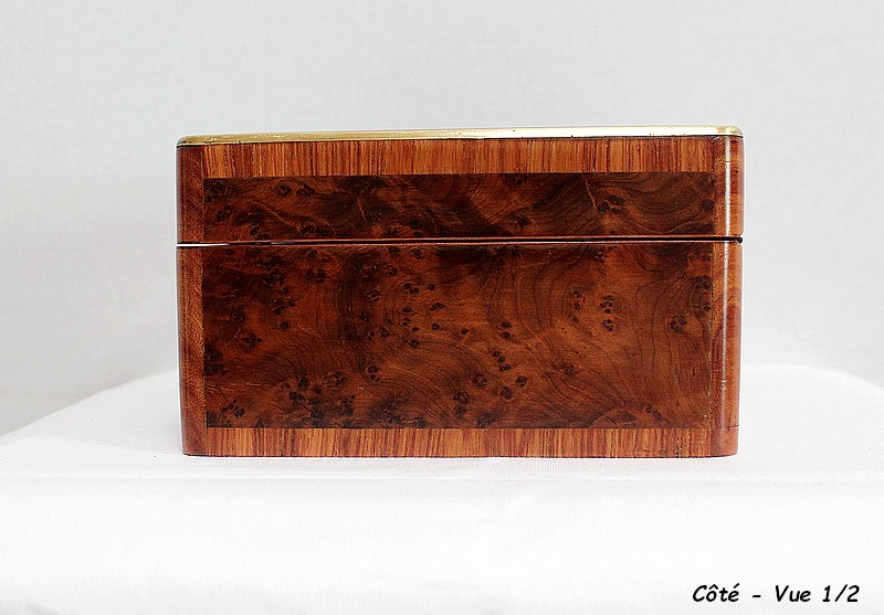 Élégante petite Boîte Rectangulaire conçue dans les années 1900 et composée sur l’ensemble de sa structure d’un Fin Placage de Loupe de Thuya.