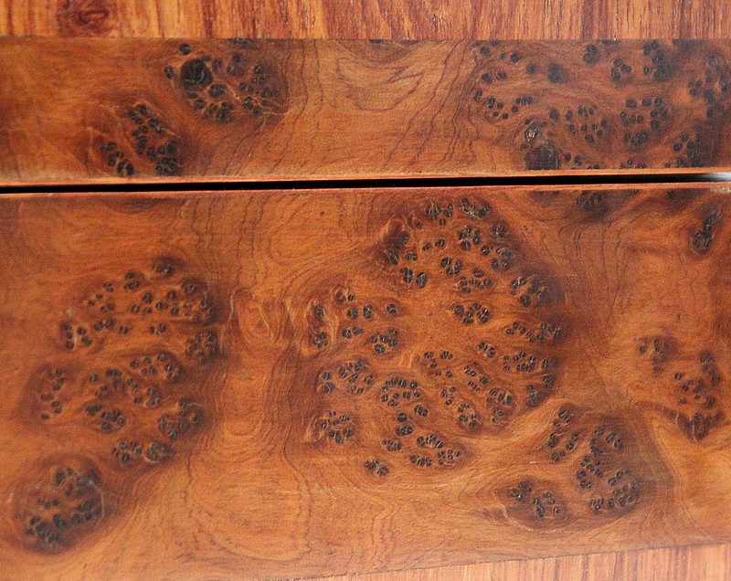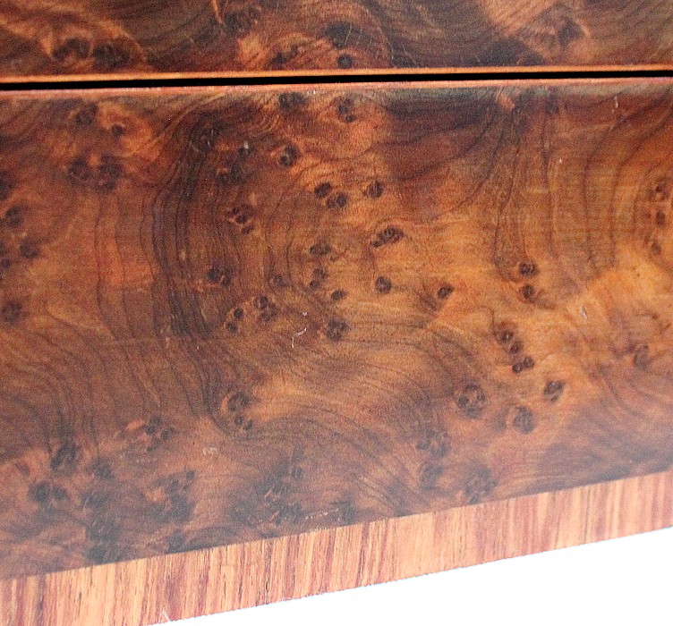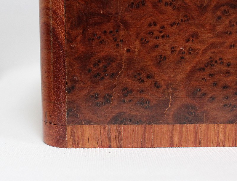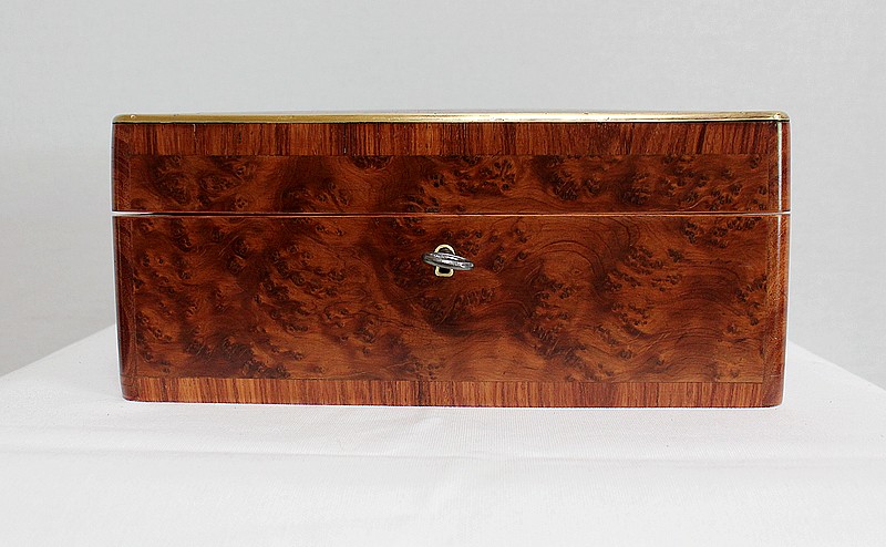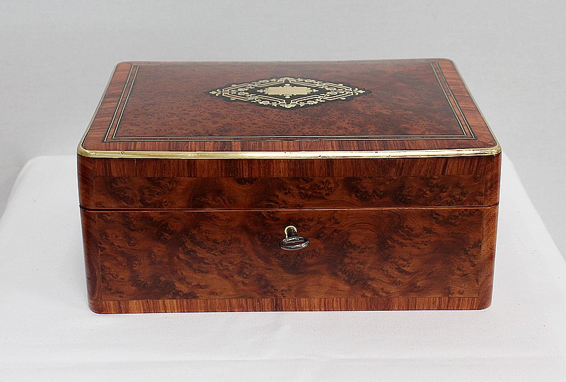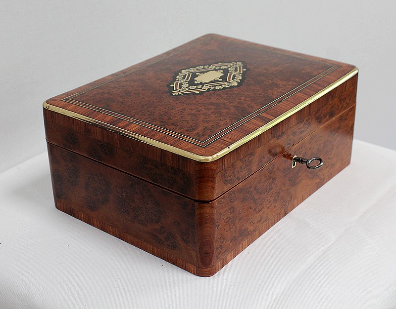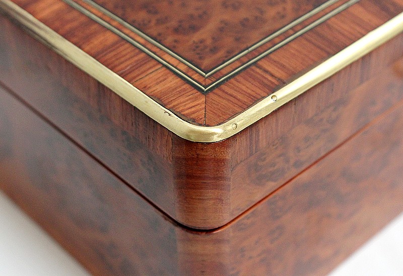 Élégante petite Boîte Rectangulaire conçue dans les années 1900 et composée sur l’ensemble de sa structure d’un Fin Placage de Loupe de Thuya.