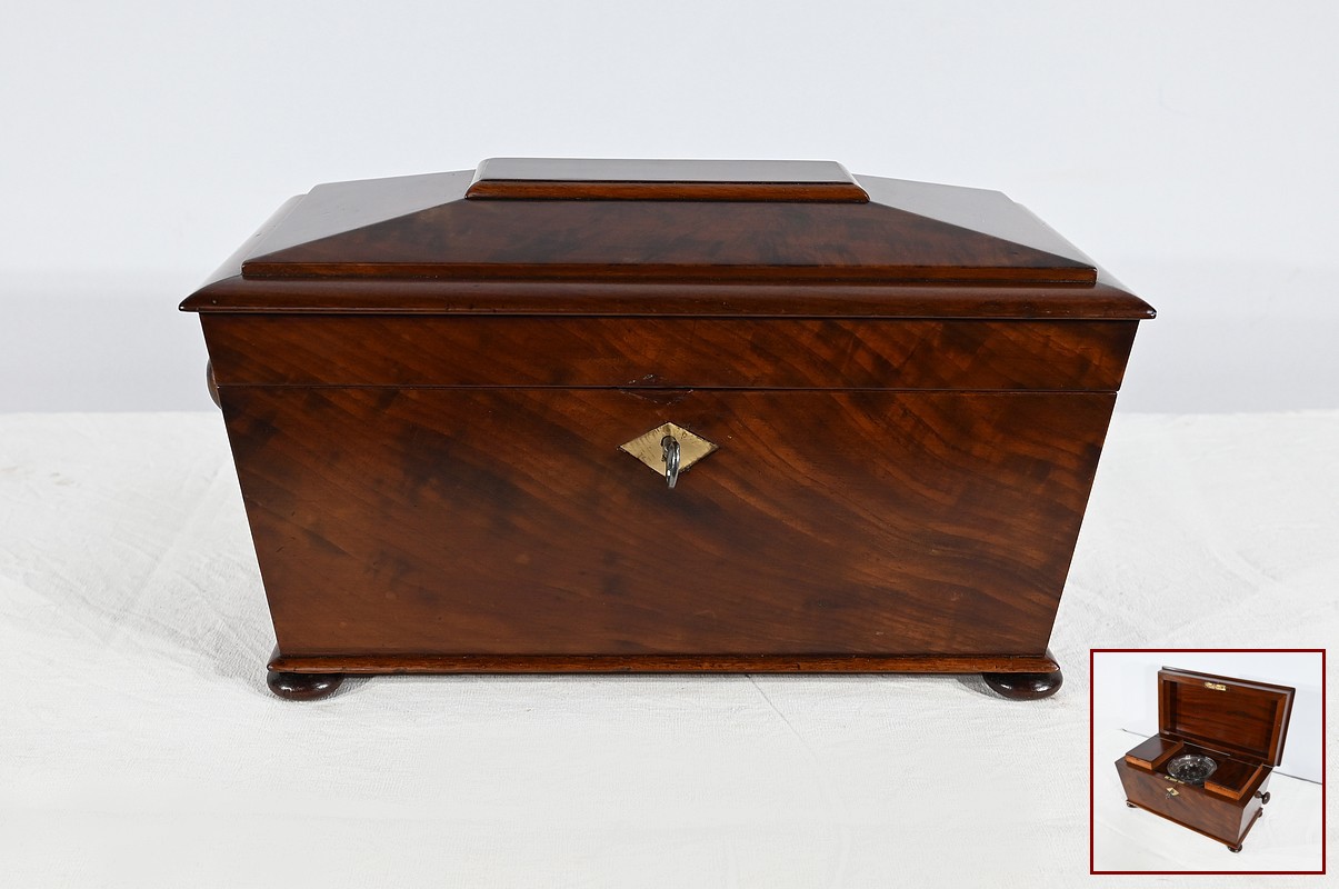 Rare Coffret à Thé Anglais ‘’Tea Caddy ‘’ en Acajou  – Milieu XIXe