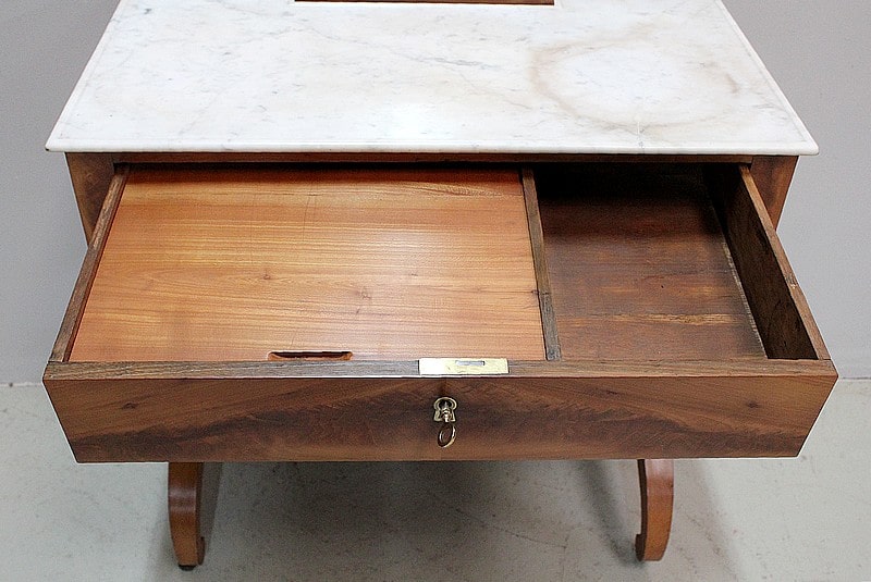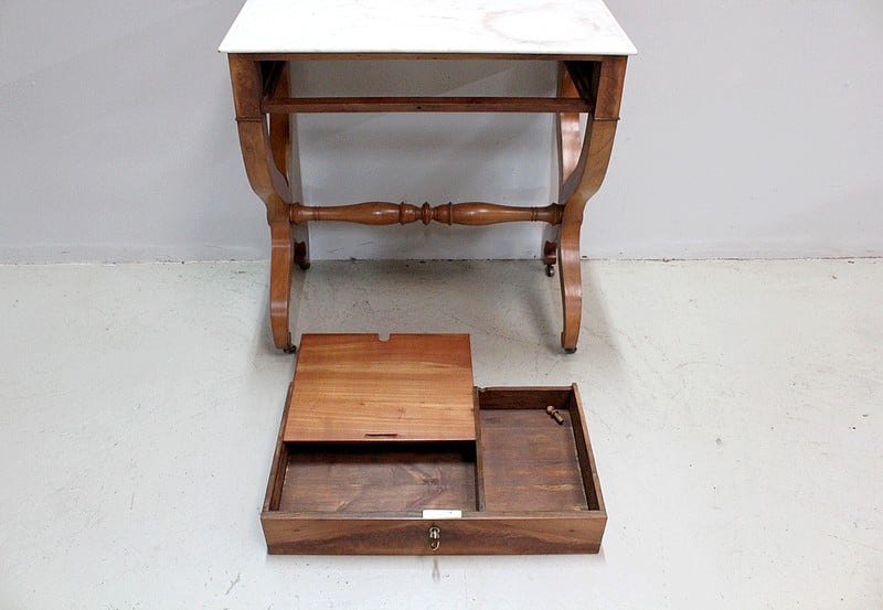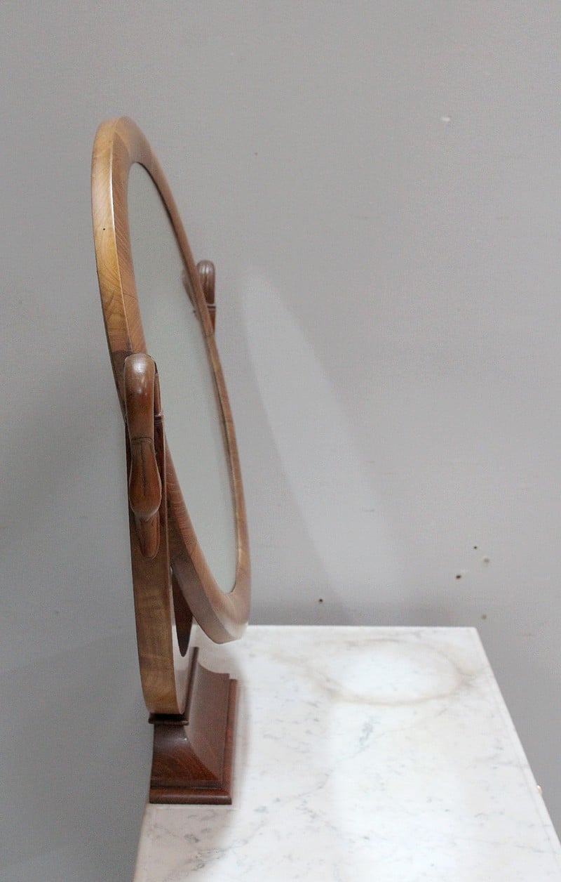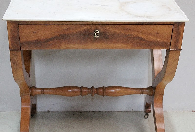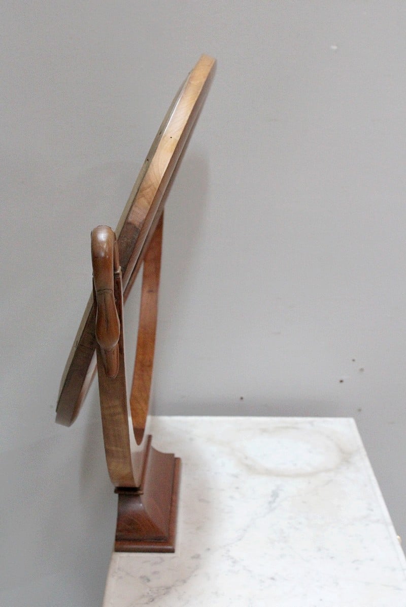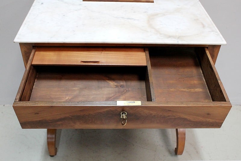 Jolie coiffeuse Charles X en Merisier massif avec son marbre blanc de Carrare tâché.