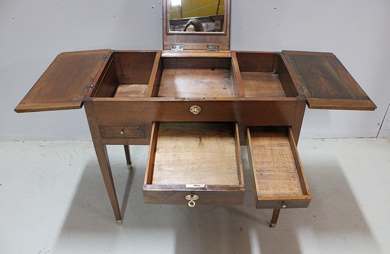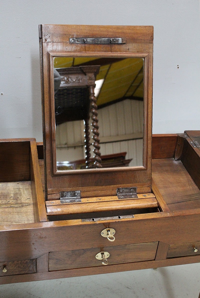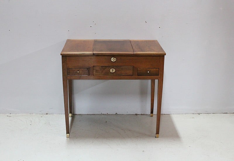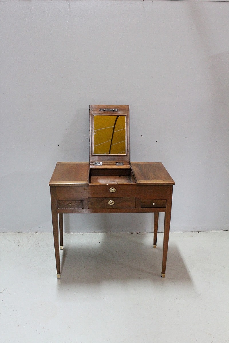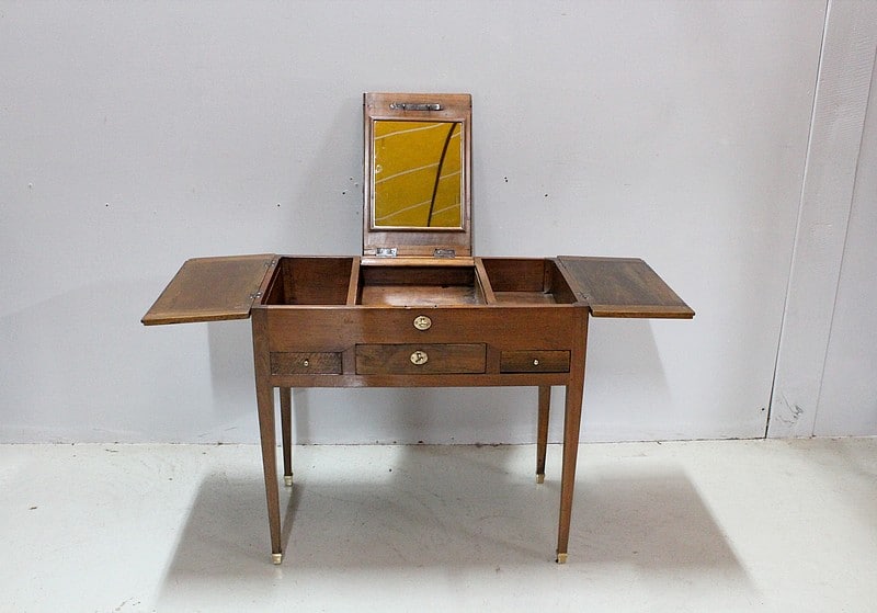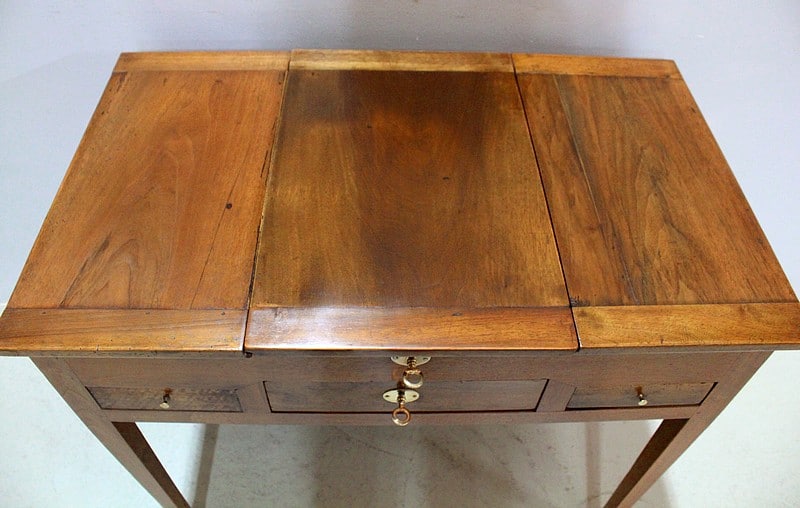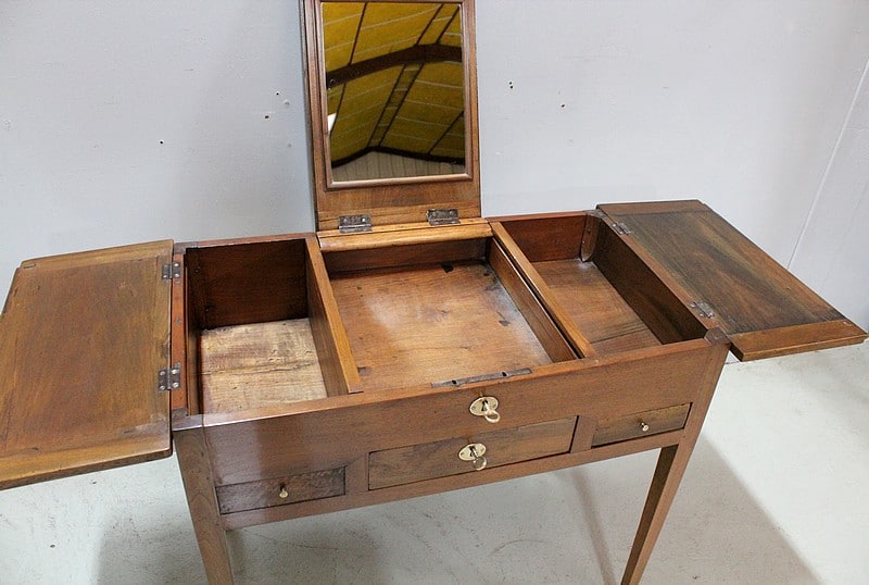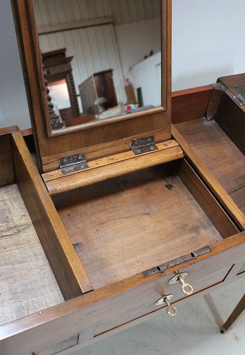 Coiffeuse Directoire en Noyer blond massif.