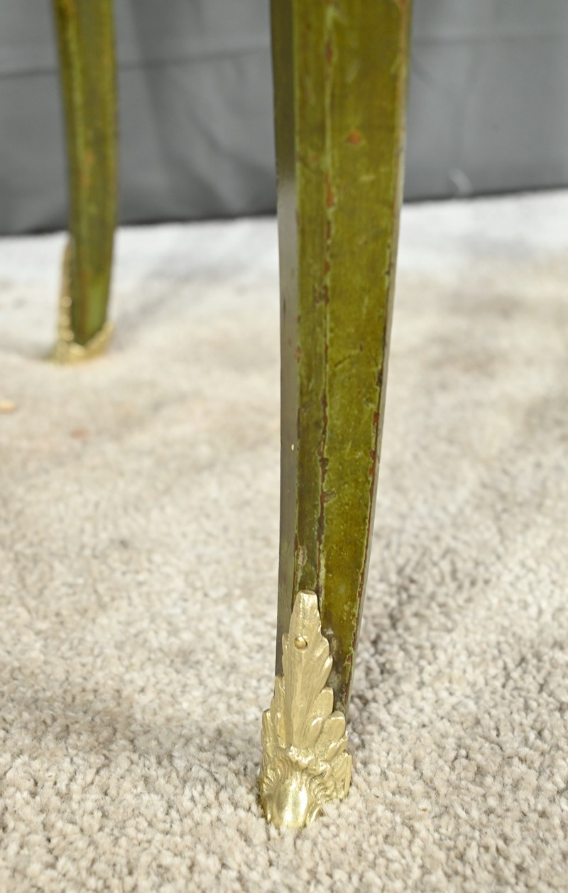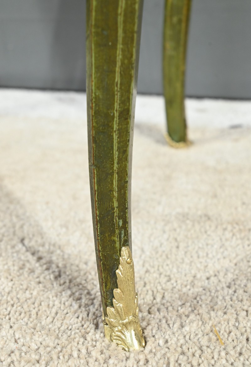 L’ensemble repose sur des pieds en coup de fouet se terminant par des sabots en bronze.