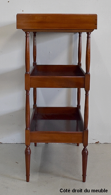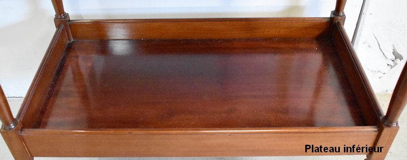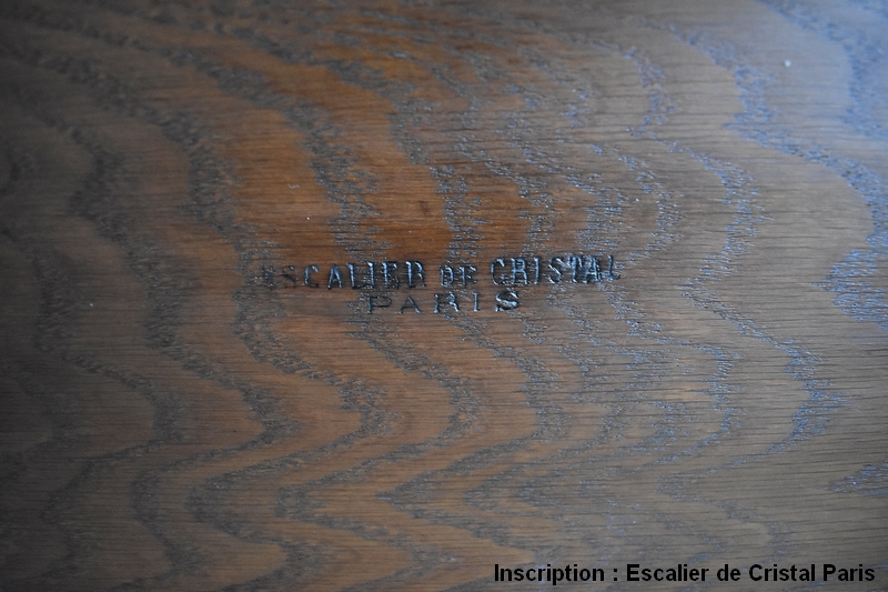 Ce Meuble est monté à Queue d’Aronde, et l’estampillage « Escalier de Cristal Paris » sous son dernier plateau atteste qu’il a bénéficié d’une Grande Qualité de Travail et de Bois. En effet, c’est en 1870 que la Maison Française étend sa fabrication aux Meubles, majoritairement des copies du XVIIIe, d’une Précision d’Exécution telle qu’ils sont régulièrement confondus avec les originaux.