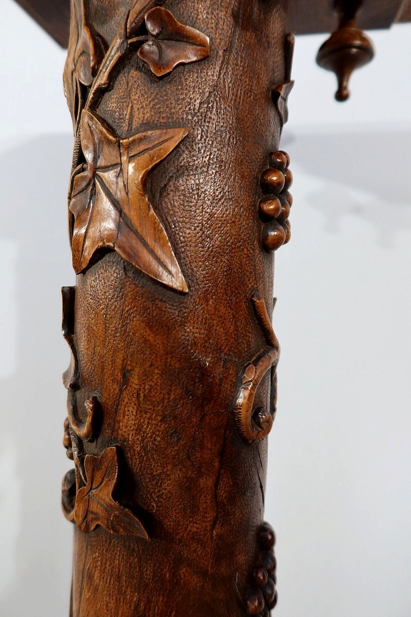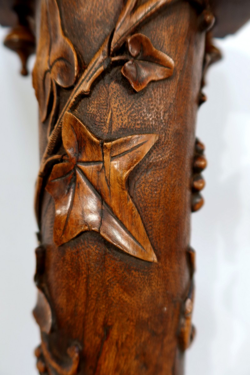 Une Sellette naturelle, tant dans sa composition que dans ses décors, qui servira de support à un objet dans le même esprit.