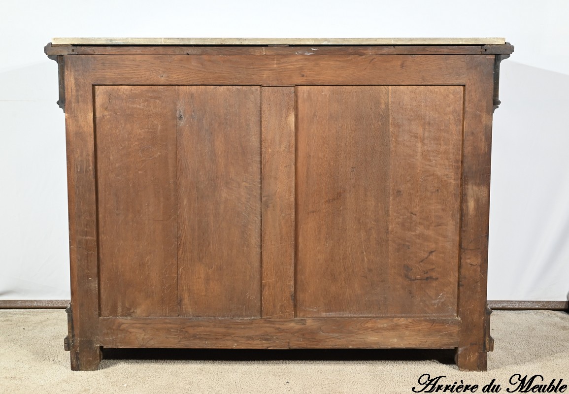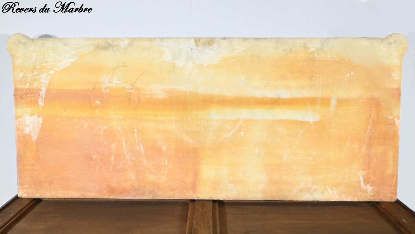 Le bâti, le parquet sous marbre et l’arrière sont en chêne.