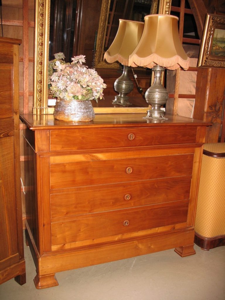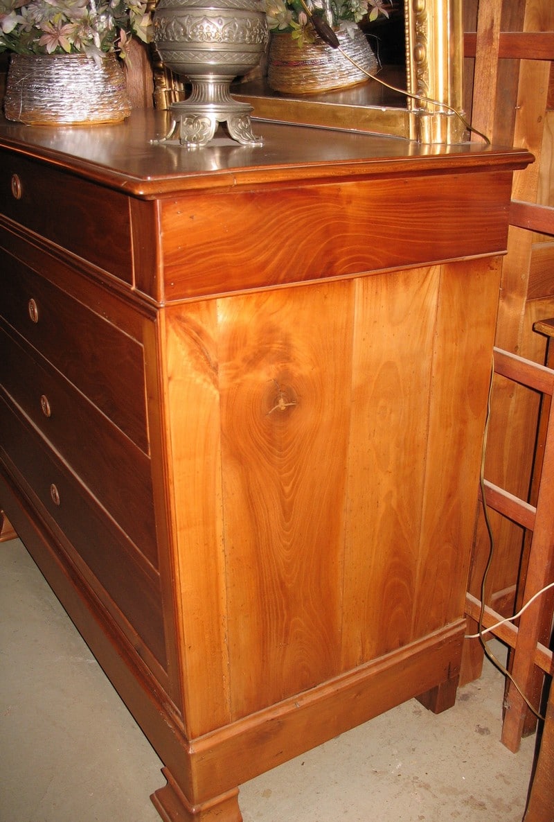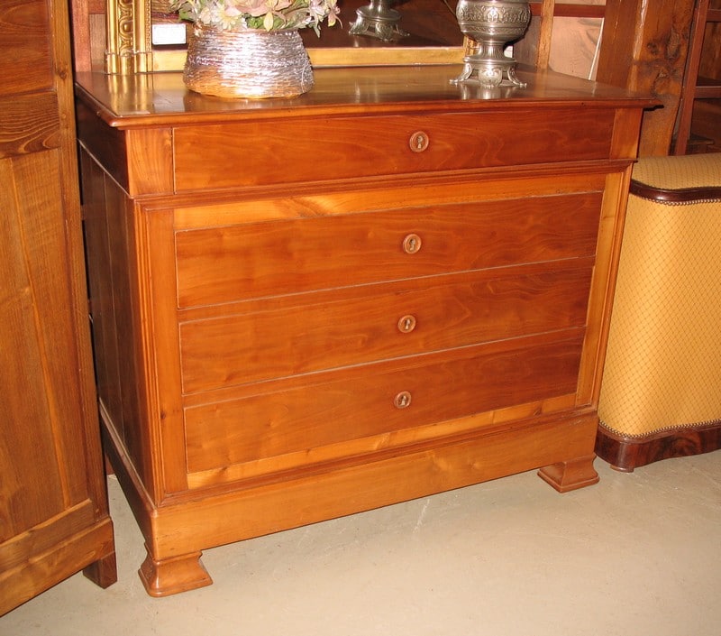 Commode d’époque 1900 en Merisier à 4 tiroirs. Pieds sabots. Petite largeur facile à placer.