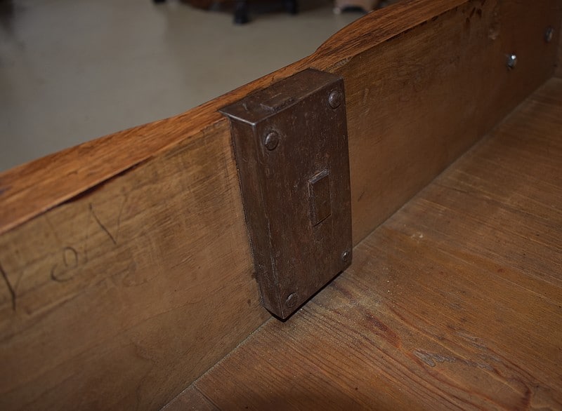 Parfait état après restauration, décapage, traitement et patine cirée dans notre atelier. Dépose des bronzes pour nettoyage et Repose. Serrures et clés en état de fonctionnement.