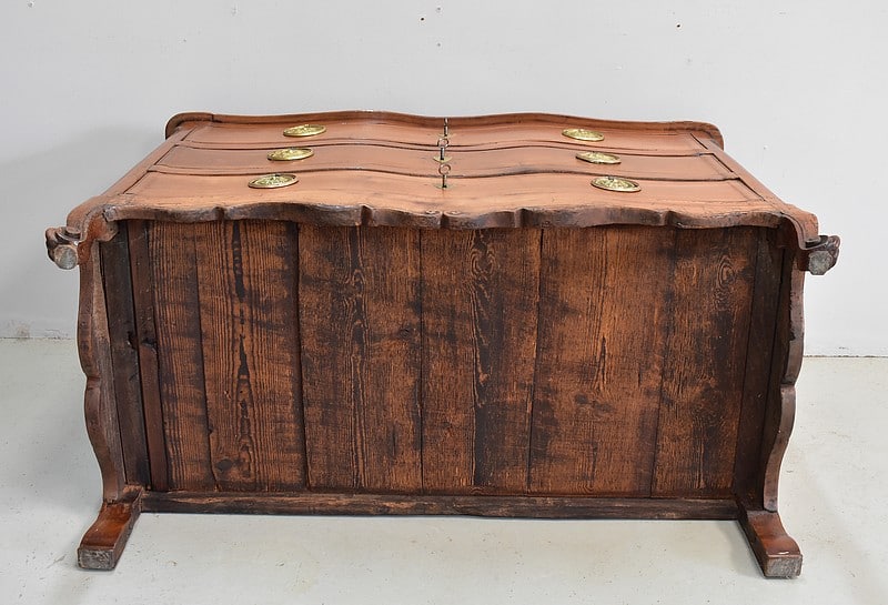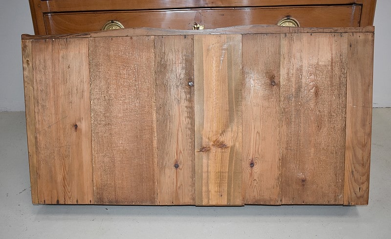 Les fonds de tiroirs sont en pin et leurs côtés en châtaignier. Les ‘cache-poussière’ sont également en pin.