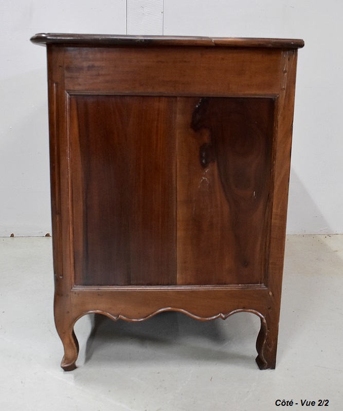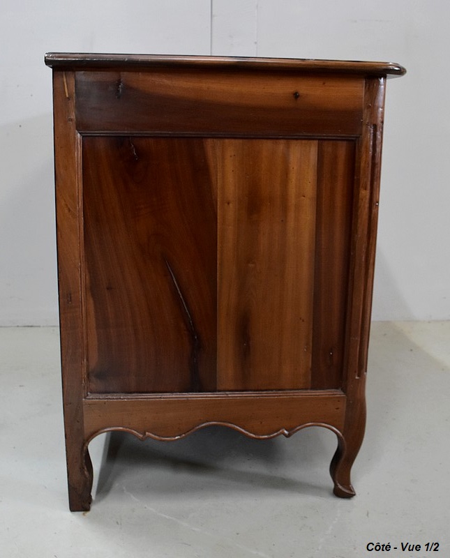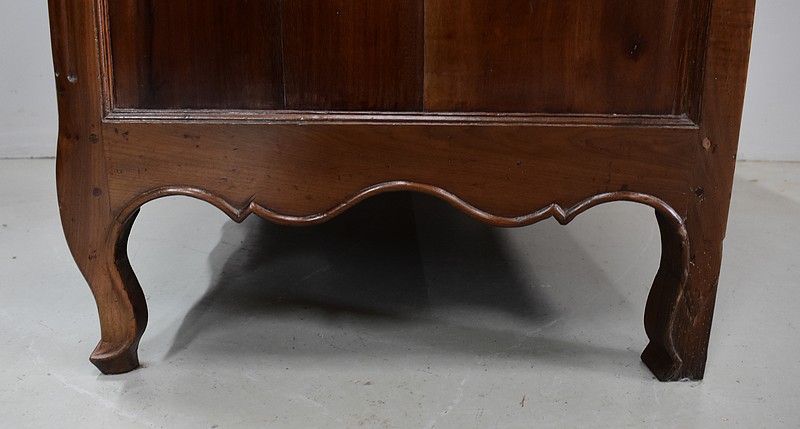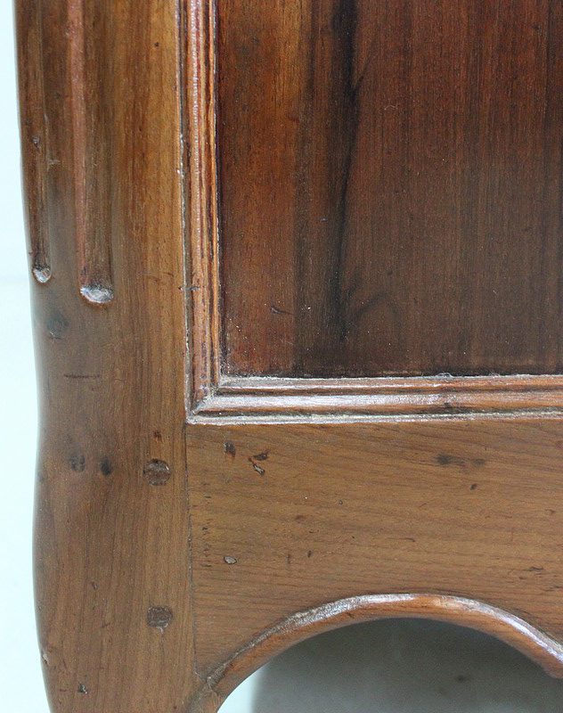Les montants avant de ce Meuble sont en quart de rond, Cannelés, et terminés en Pieds de Biche. Les pieds de l’arrière sont plus Modestement Découpés.