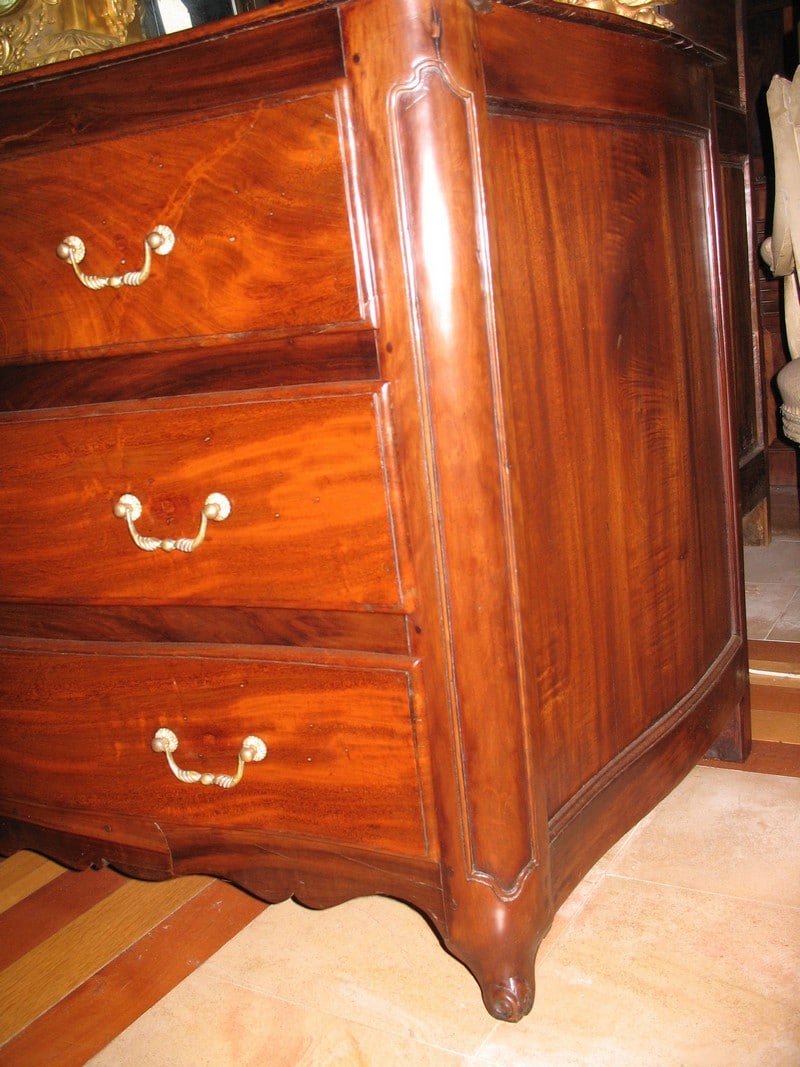 Commode de Port Nantaise en Acajou de Cuba. Très sobre et de petite dimension, elle ouvre par trois tiroirs.