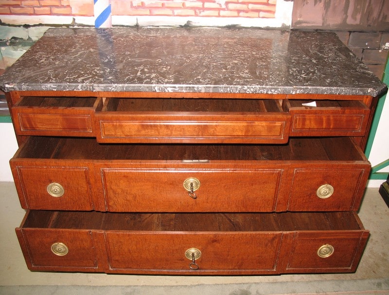 Depuis 50 ans, chaque pièce de mobilier est minutieusement restaurée avec passion dans notre atelier d’ébénisterie.