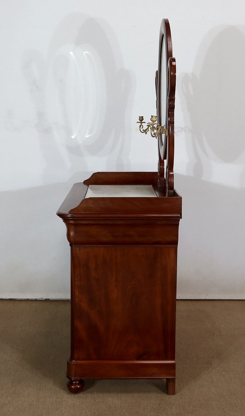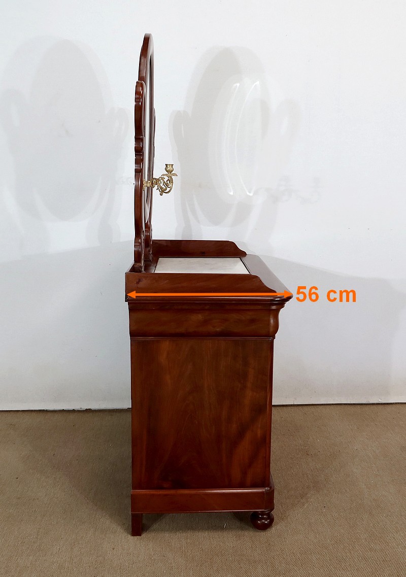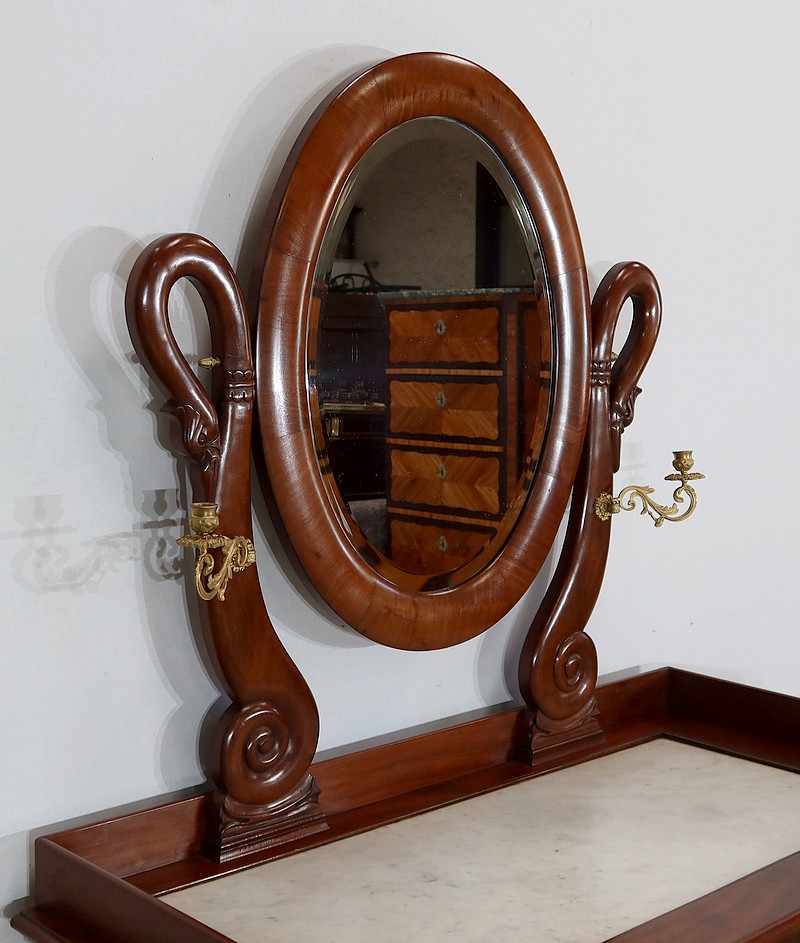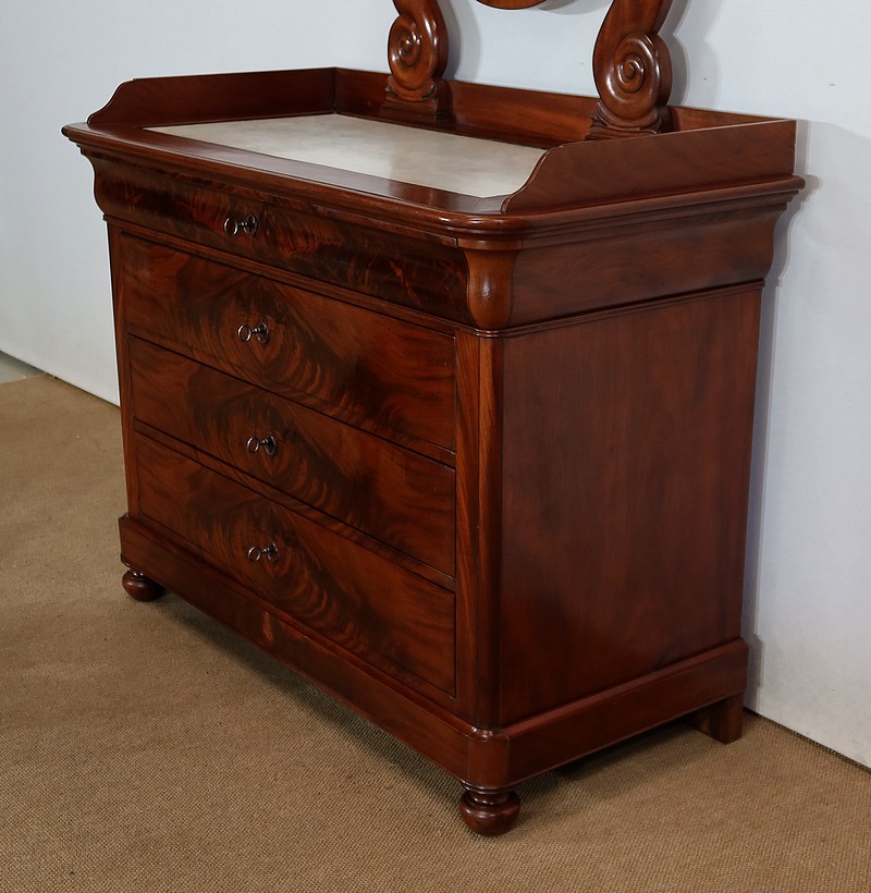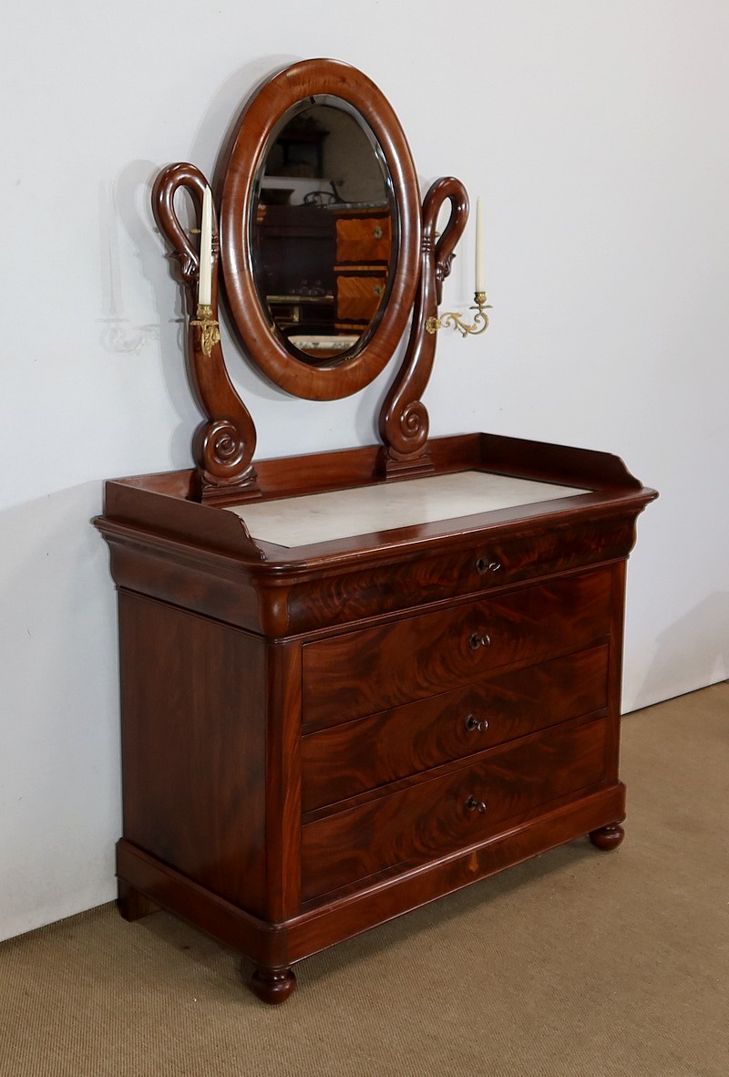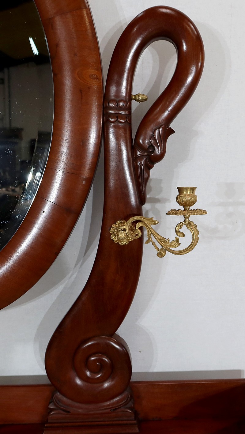Belle commode en placage d’acajou de Cuba surmontée d’une importante psyché.