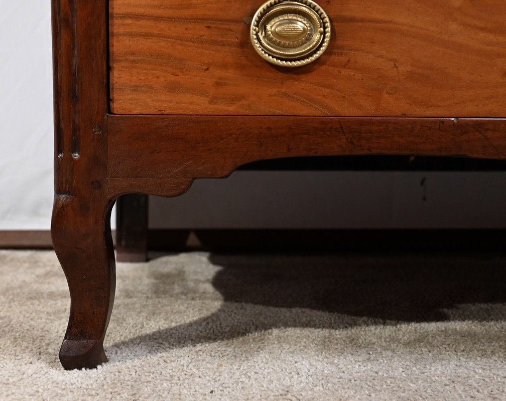 Acajou de Cuba : dessus du meuble, pieds, Tiroirs haut, faux tiroir, traverse intermédiaires et traverse basse.