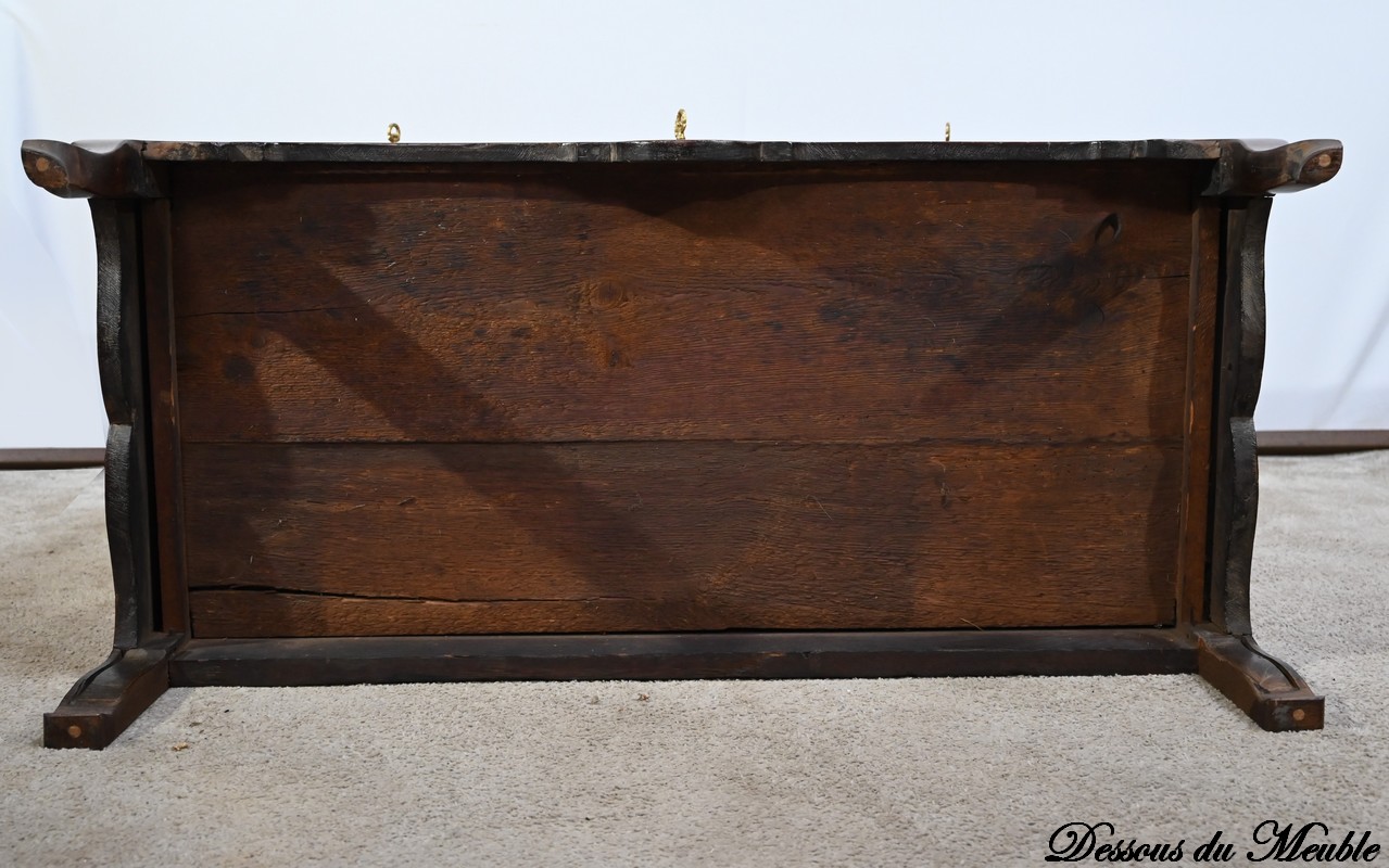 Vous resterez sous le charme de notre commode scriban tricentenaire par l’élégance de ses lignes et sa sobriété.