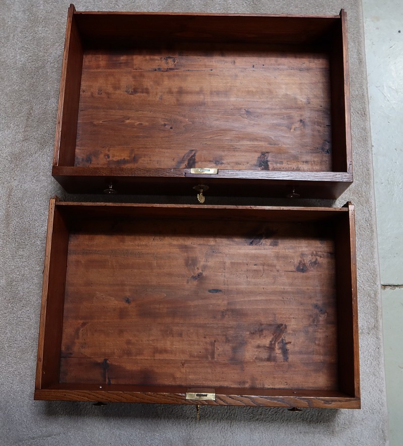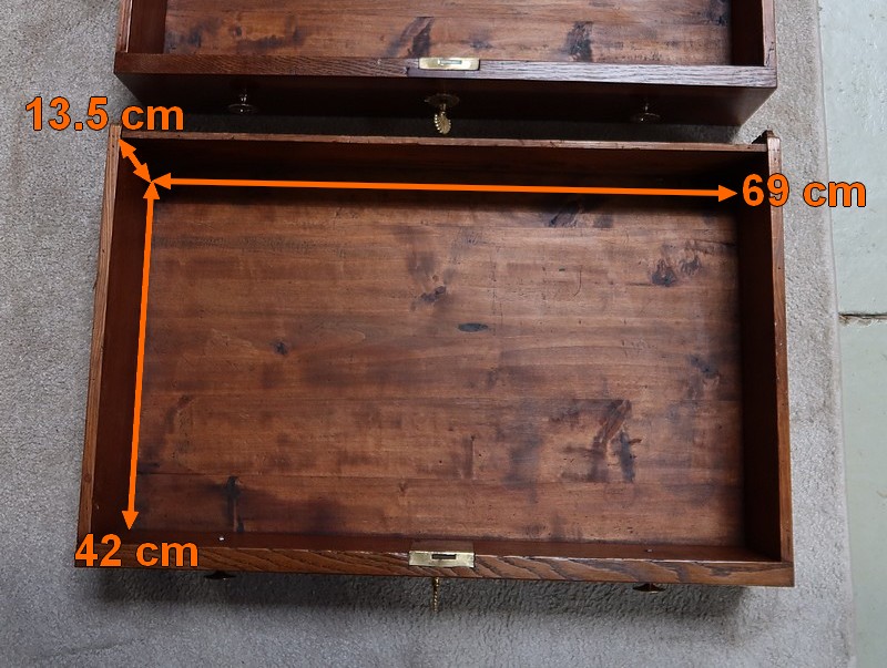 Cet élément haut est souligné par une moulure en saillie avec un carré et une pente. Les côtés quant à eux sont composés par deux parties en ronce d’acajou et acajou de fil.