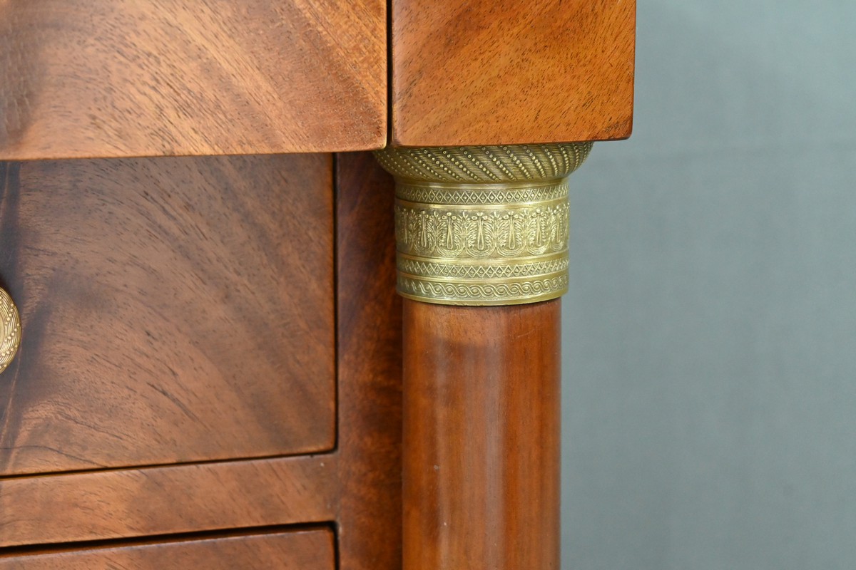 Petite Commode Chiffonnière en Acajou Flammé, style Empire – 1ère partie XXe