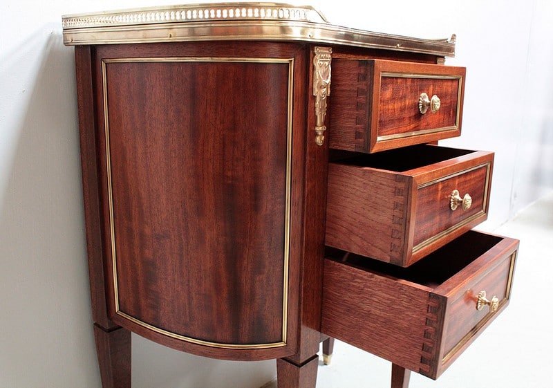 Depuis 50 ans, chaque pièce de mobilier est minutieusement restaurée avec passion dans notre atelier d’ébénisterie.