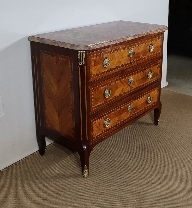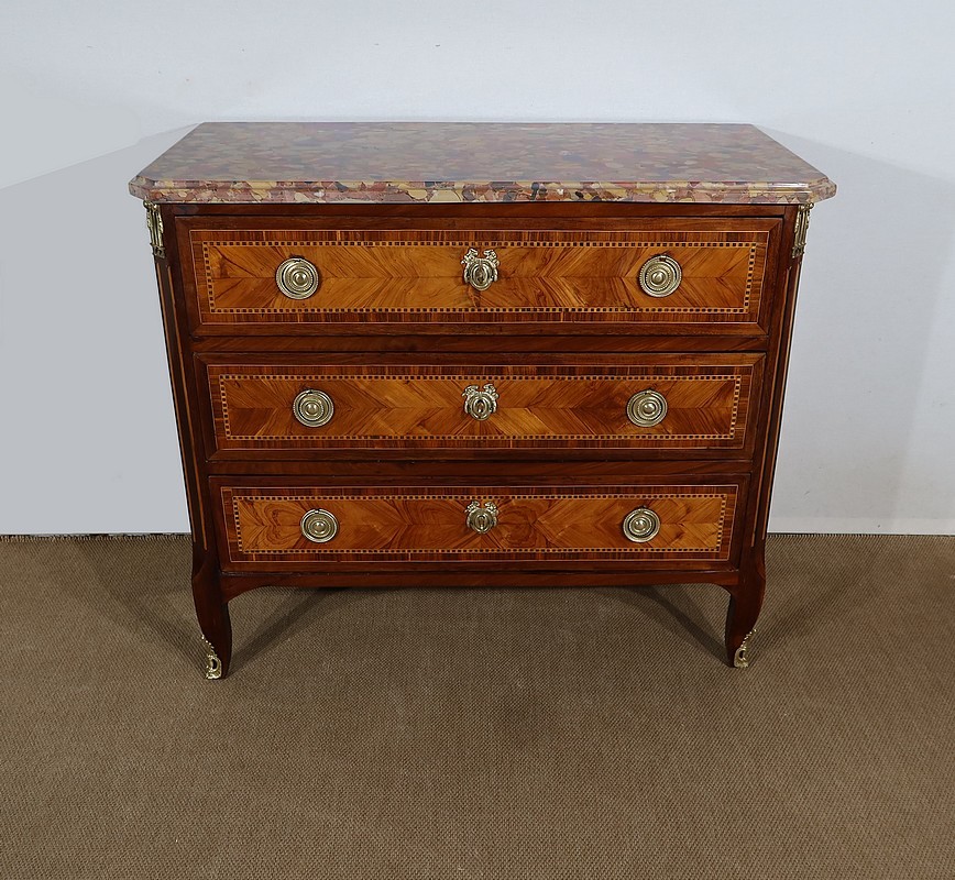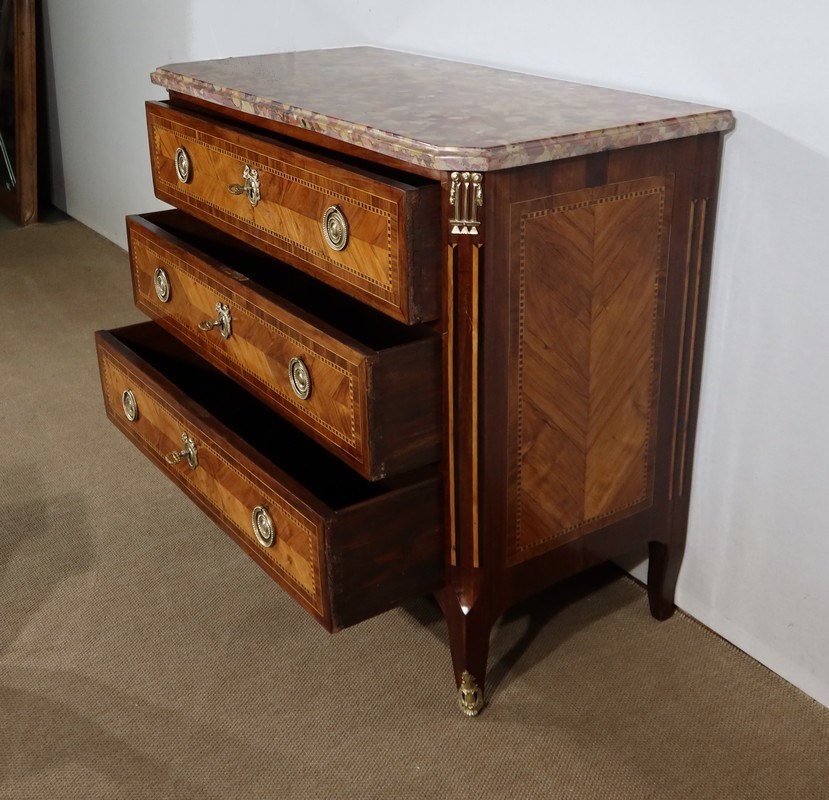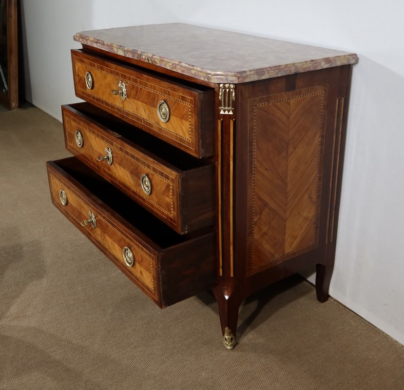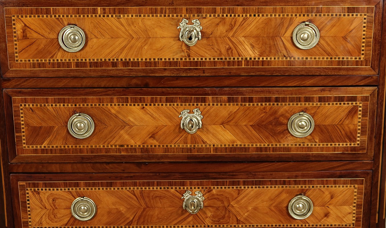 Petite Commode en Marqueterie de Bois Précieux, estampillée C-M. Magnien, époque Louis XVI – XVIIIe