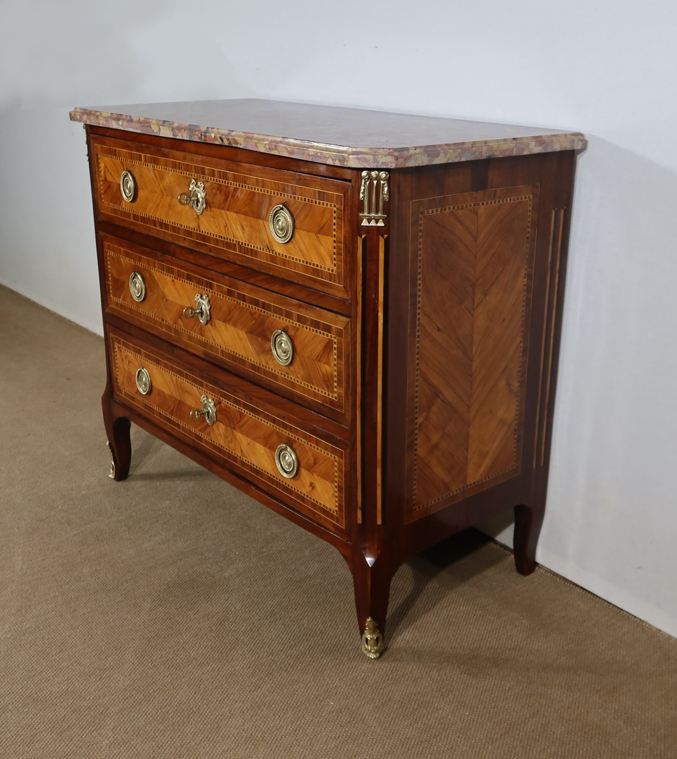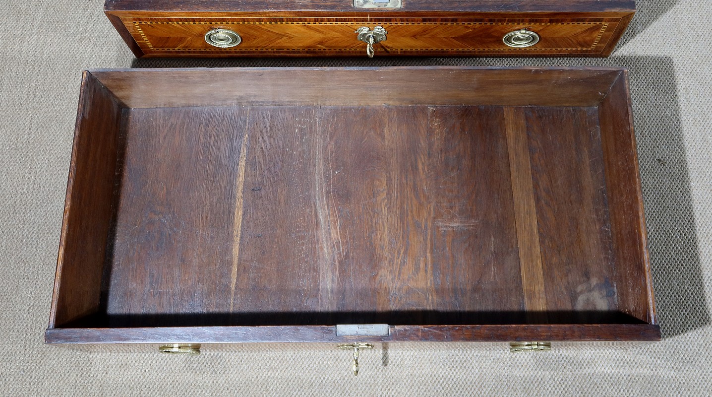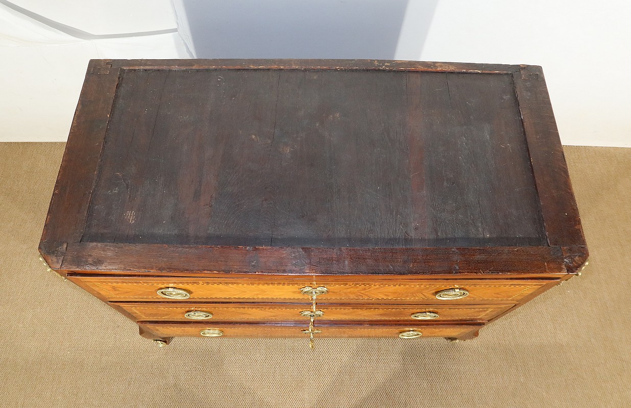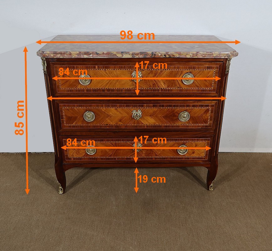 Petite Commode en Marqueterie de Bois Précieux, estampillée C-M. Magnien, époque Louis XVI – XVIIIe