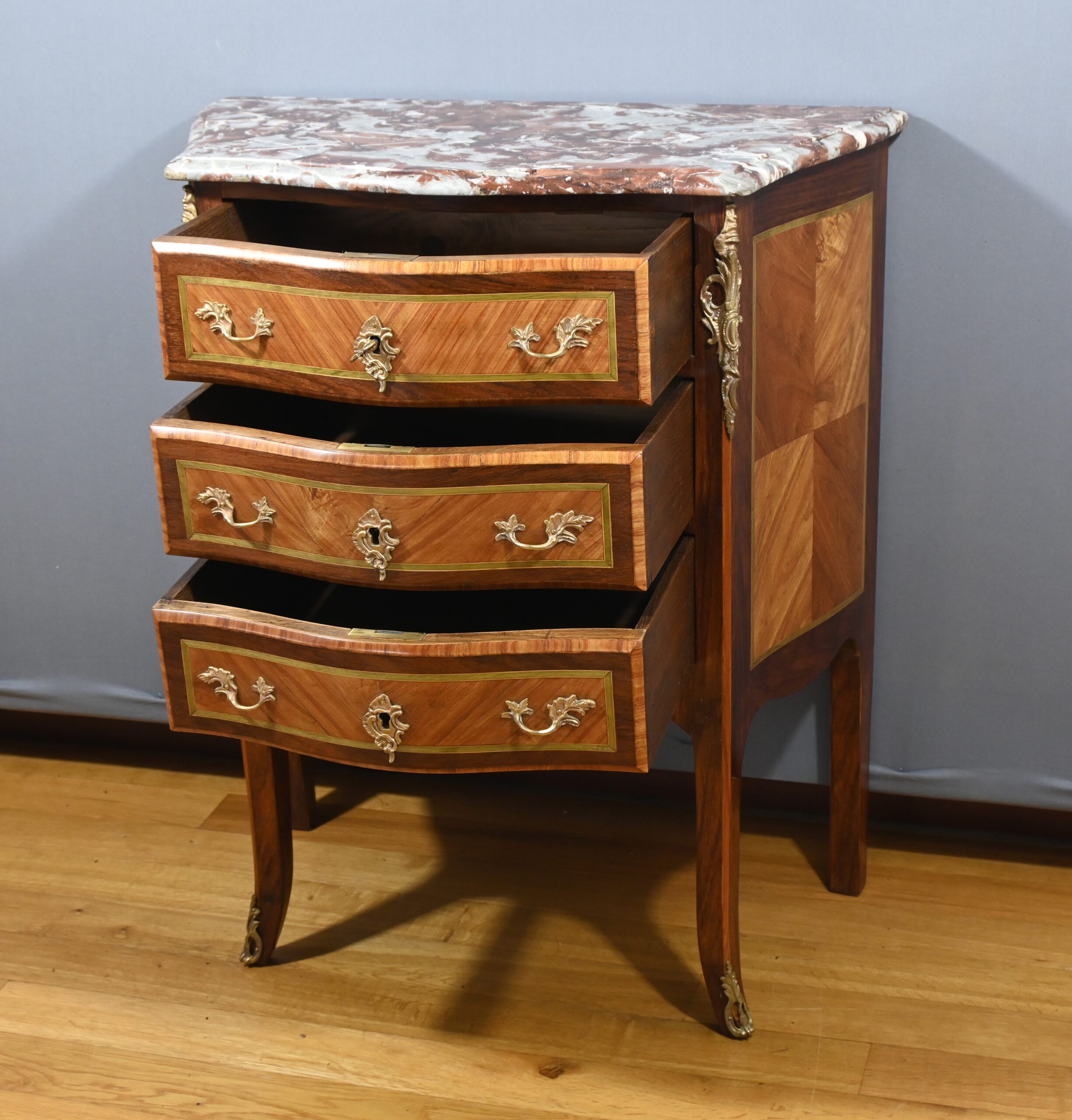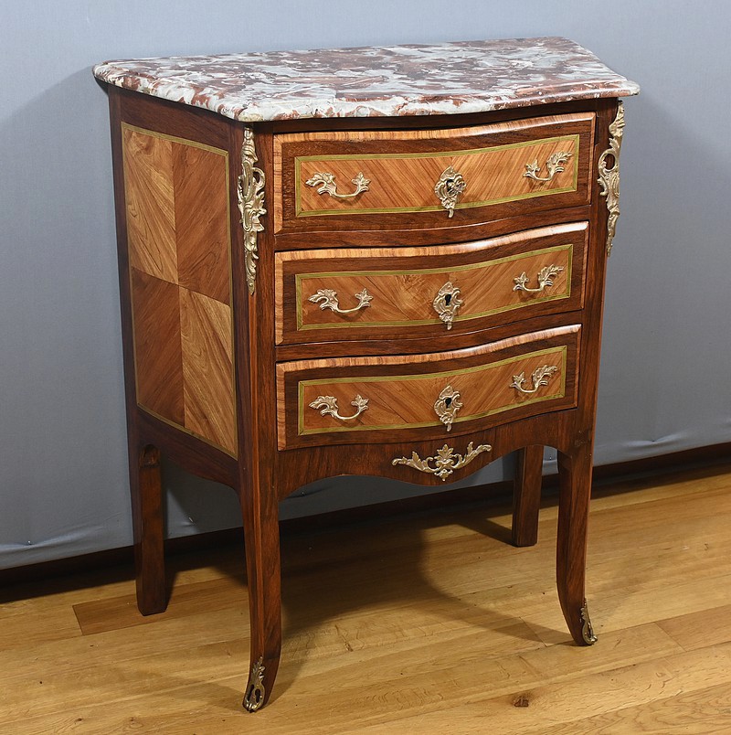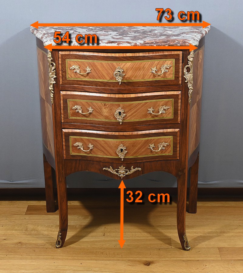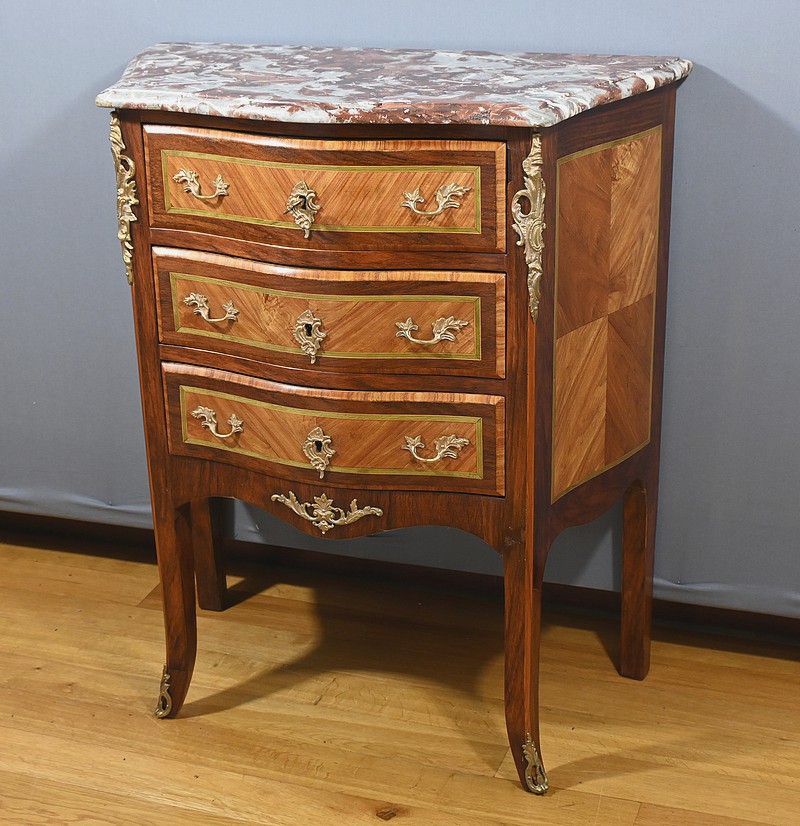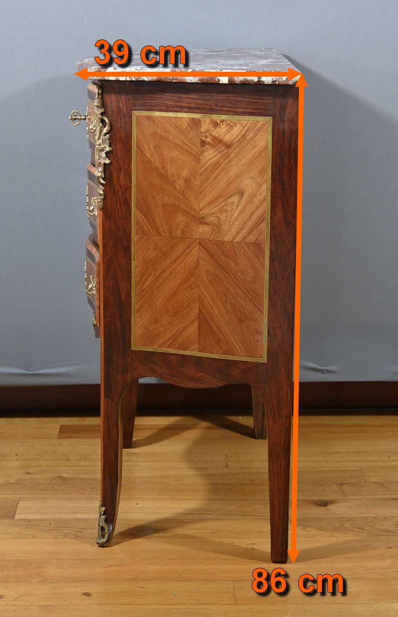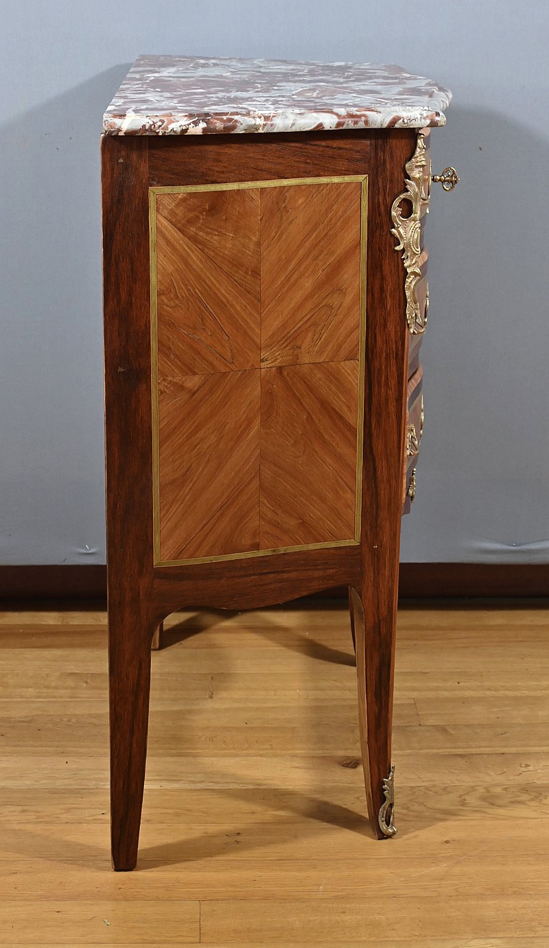 Petite Commode en Marqueterie, style Transition Louis XV / Louis XVI – Début XXe