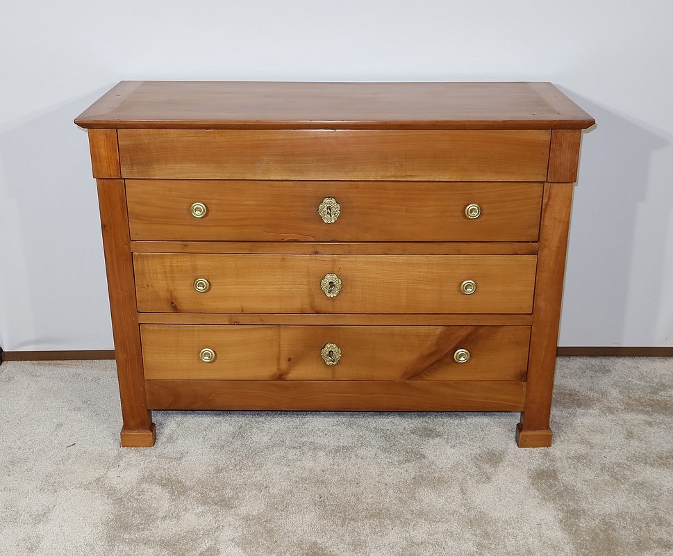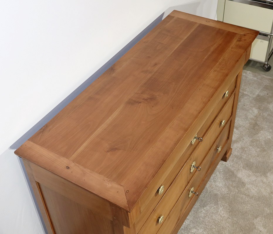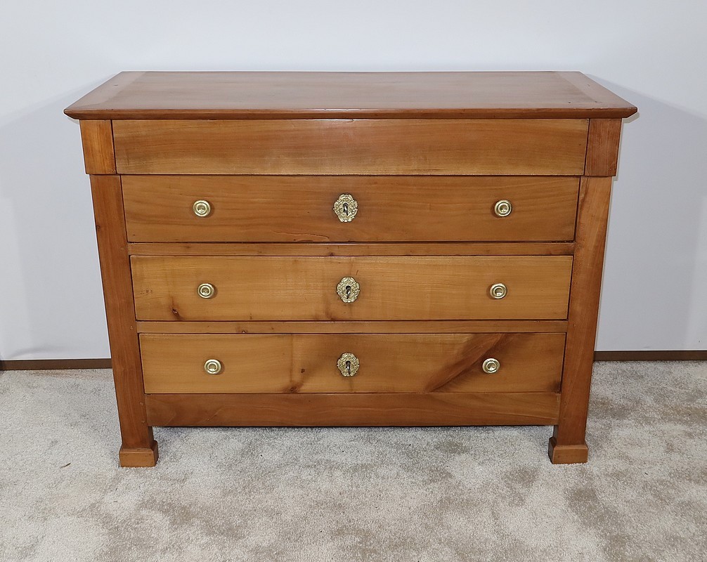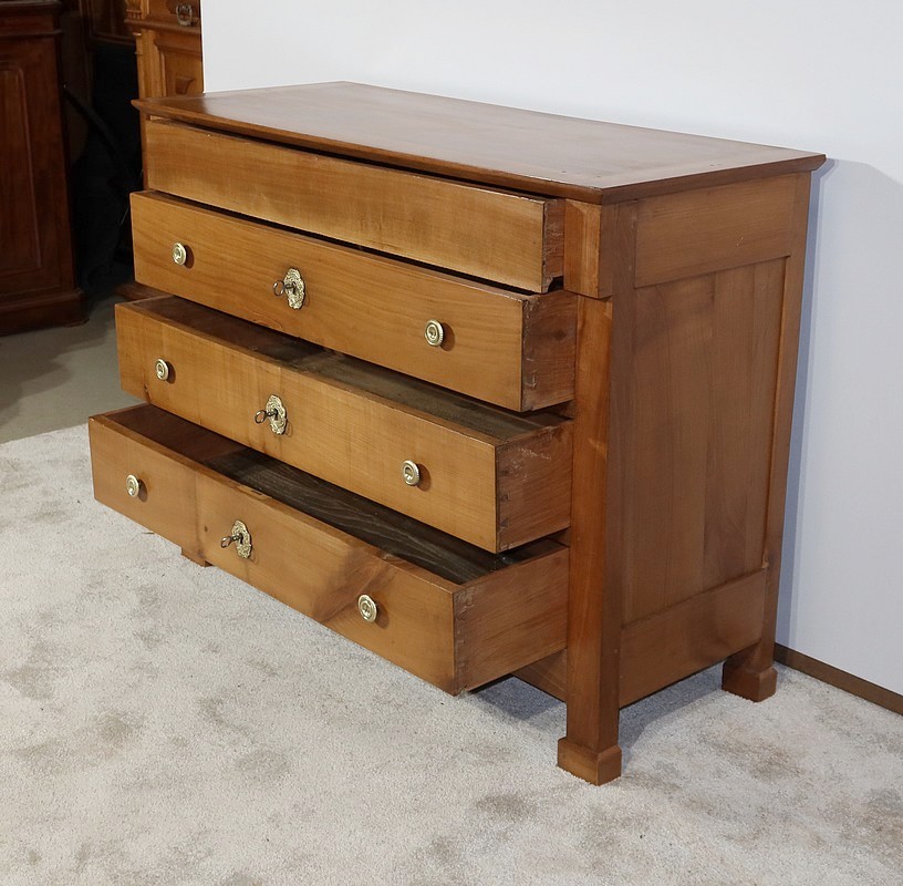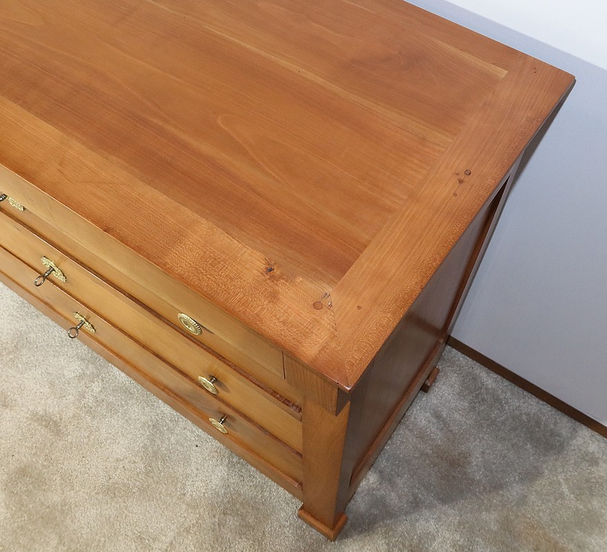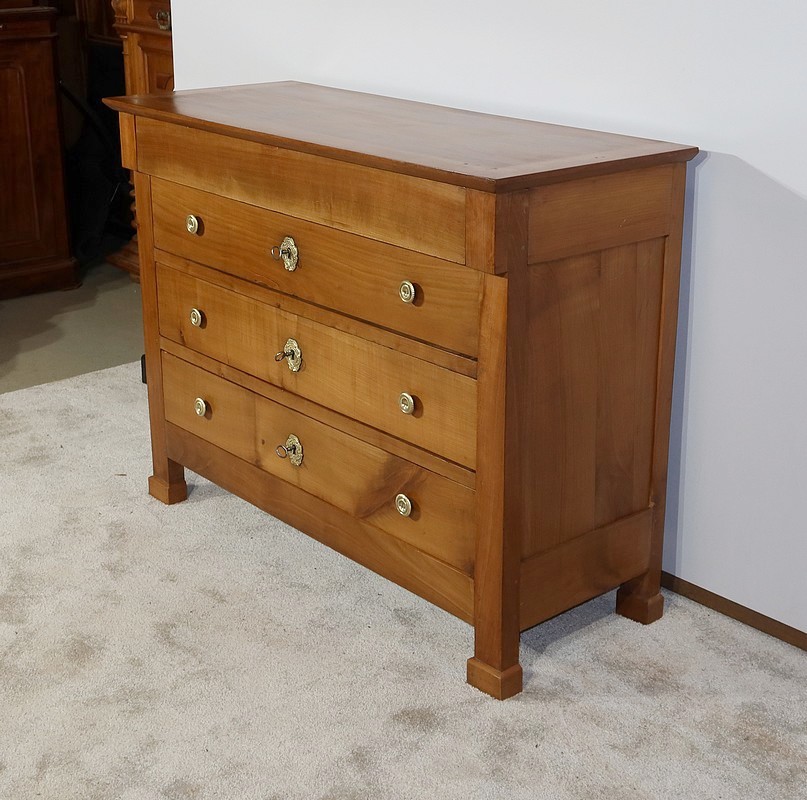 Charmante commode Directoire en merisier massif, de petite dimension et de faible profondeur, bénéficiant d’une belle patine.