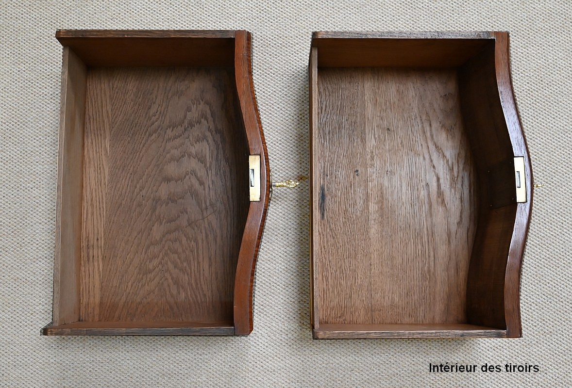Les intérieurs des tiroirs ainsi que l’arrière du meuble sont en chêne massif.