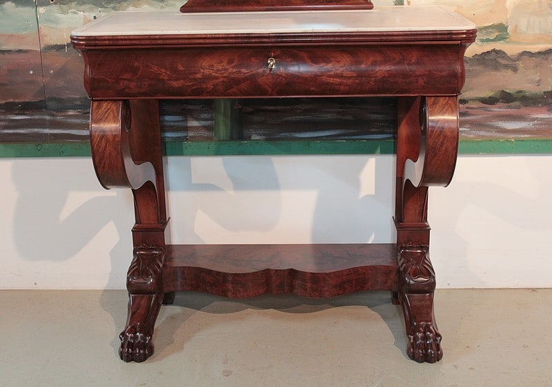 Elle repose sur des pieds en griffes de lion.