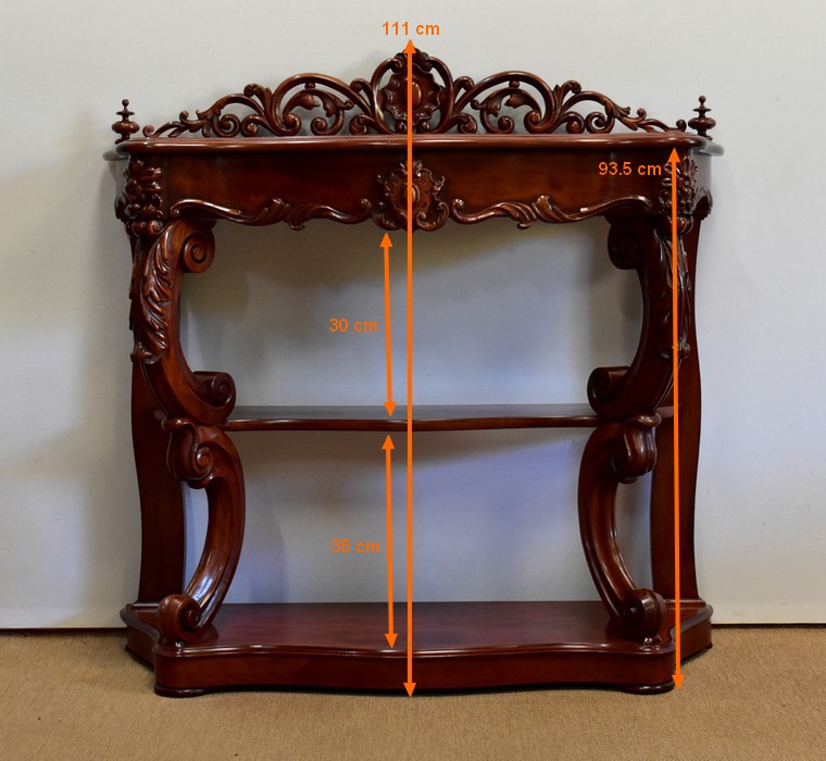 Console Desserte d’époque Napoléon III, en Acajou massif, et placage d’Acajou.