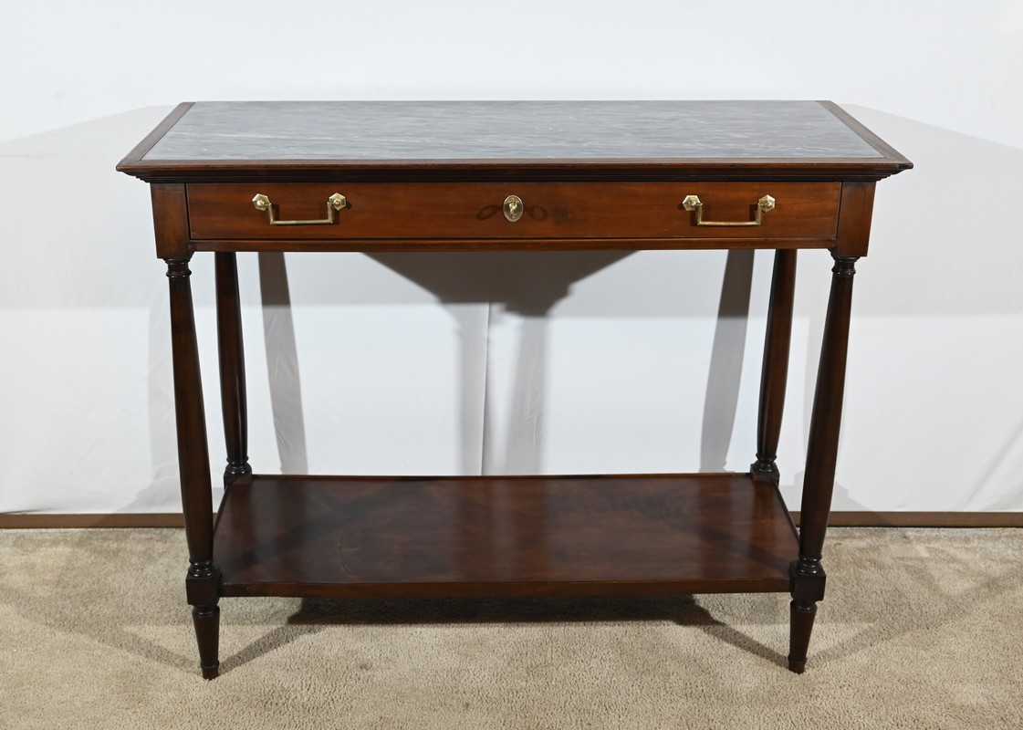 Cette console authentique séduira les amateurs de meubles d’art par son dimensionnel, sa pureté dans ses lignes et son marbre encaissé.