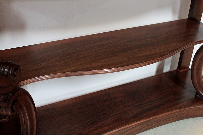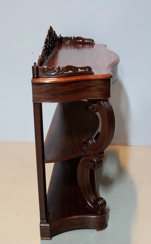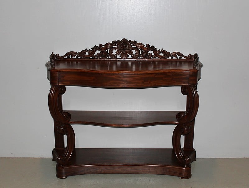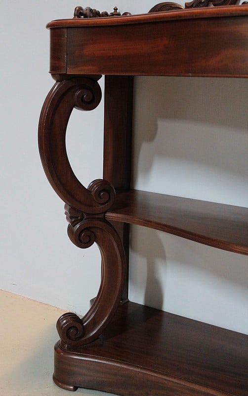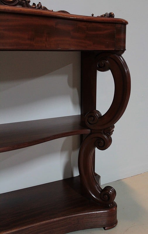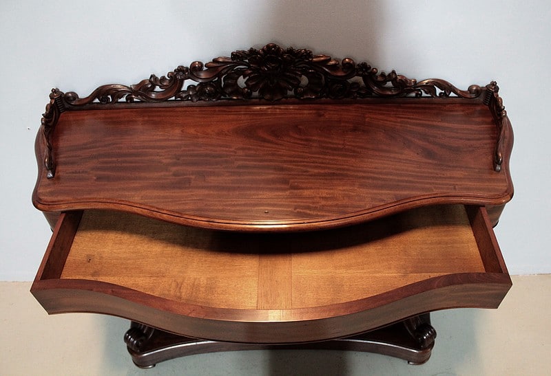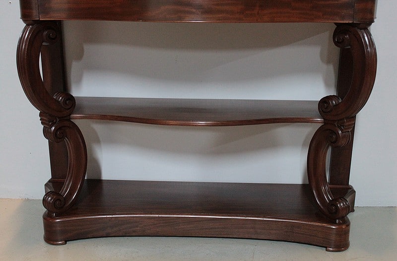 Console NAPOLÉON III en Acajou massif et placage d’acajou ouvrant par un grand tiroir dans la ceinture.