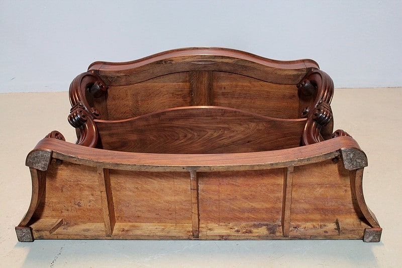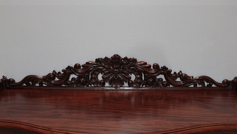 Une galerie sculptée de fleurs et de rinceaux entoure le dessus sur 3 côtés.