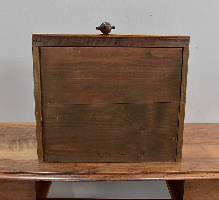 Elle ouvre en ceinture par un tiroir central de 7 cm de profondeur avec pendentif de tirage en Bois ouvragé.