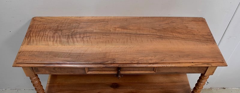 Haute Console ou Desserte en Noyer Blond massif, d’époque Louis Philippe.