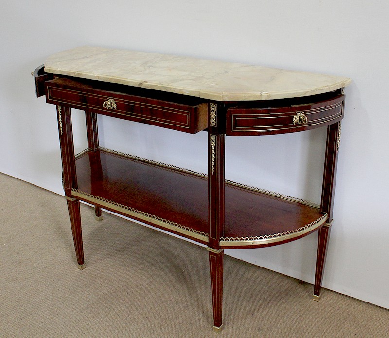 Cette Élégante Console est un Élément Incontournable pour Parfaire une Décoration Classique et Harmonieuse, elle sera également appréciée pour sa Prestance et ses Proportions.
